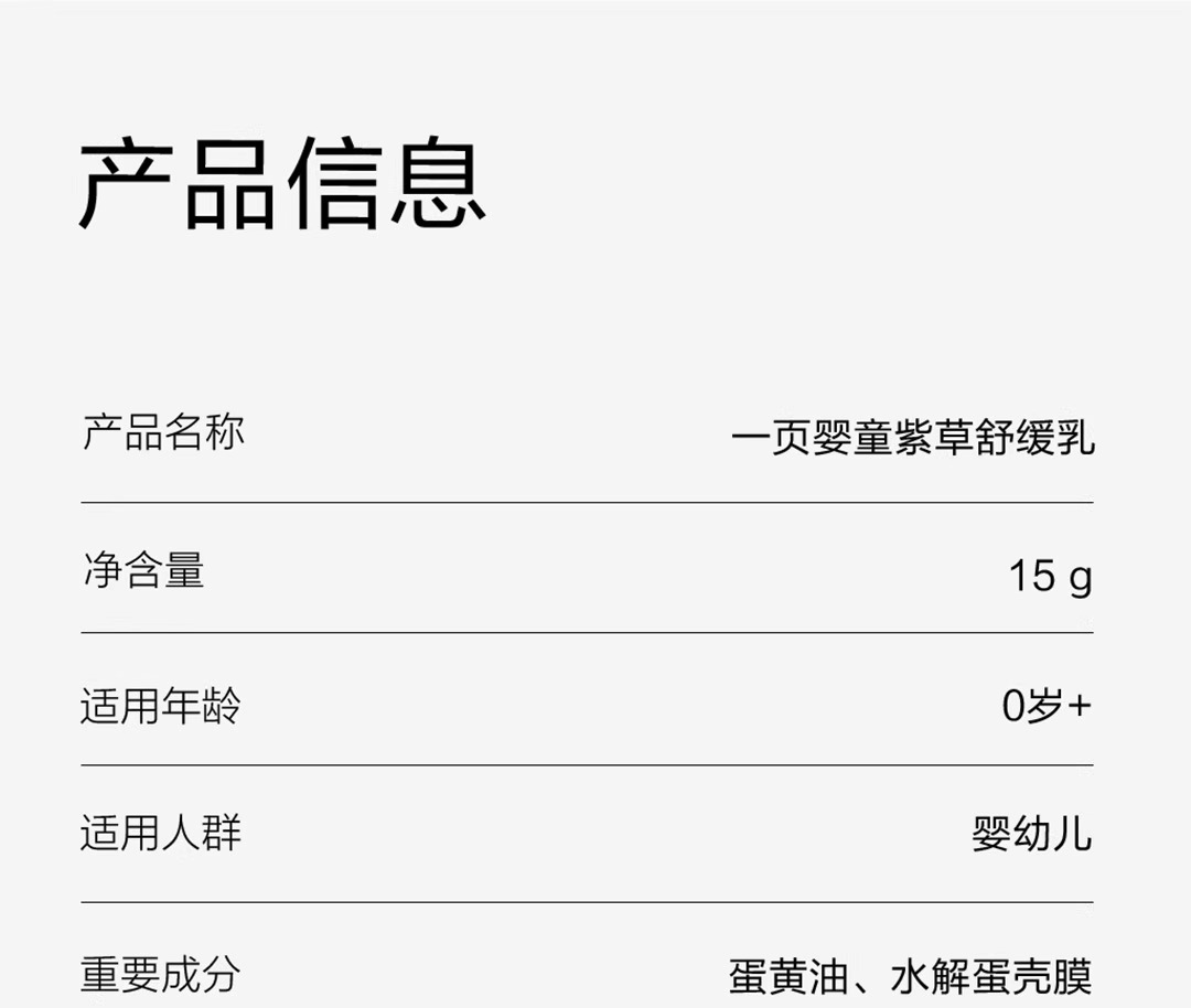 一页婴童紫草舒缓乳15g宝宝蚊虫叮咬舒缓止痒清凉