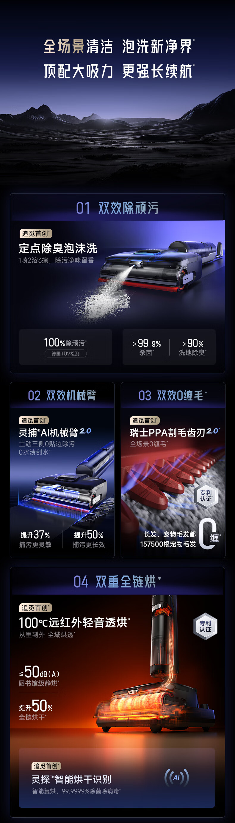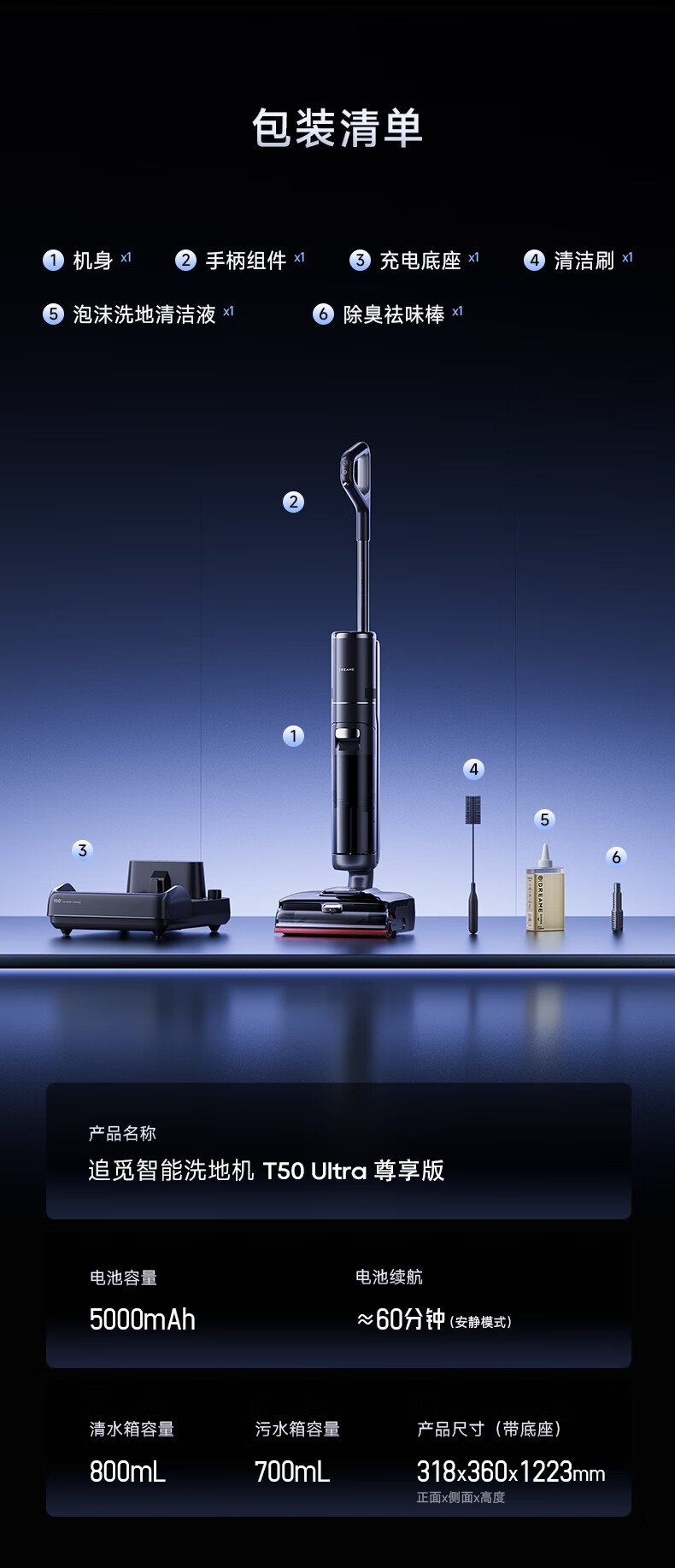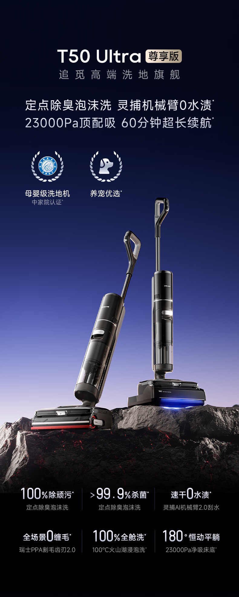 追觅 艺术家T50 Ultra 超薄躺平0缠毛0水渍