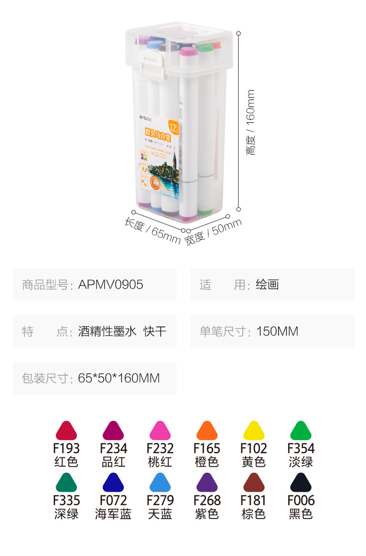 晨光双头马克笔36色APMV0902绘画儿童学生涂鸦漫画美术生学生