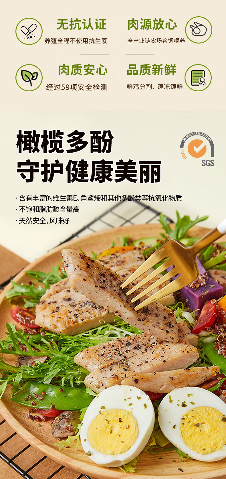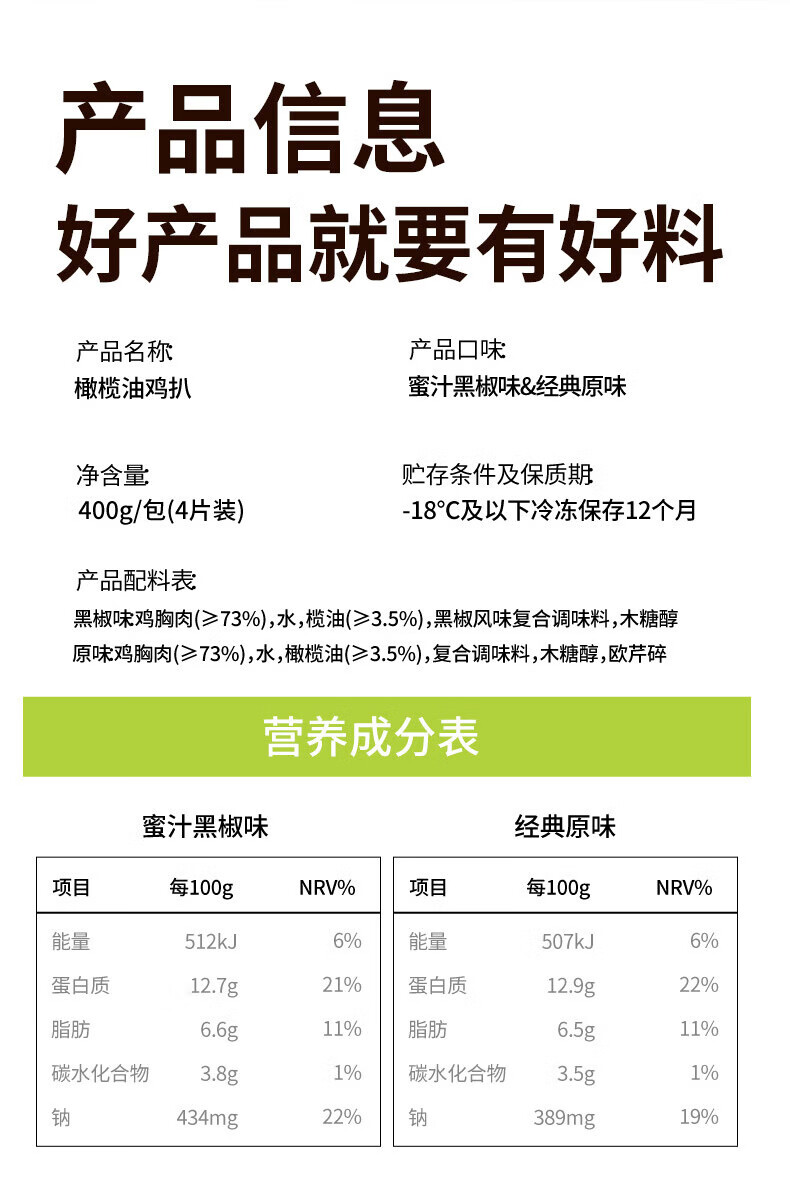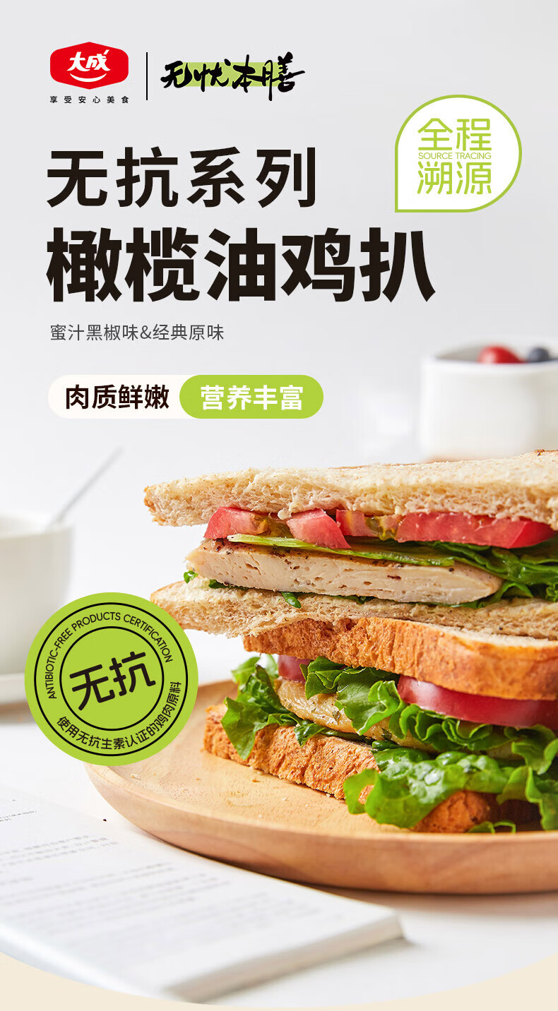 大成无抗鸡扒经典原味400g/袋 鸡胸肉高蛋白