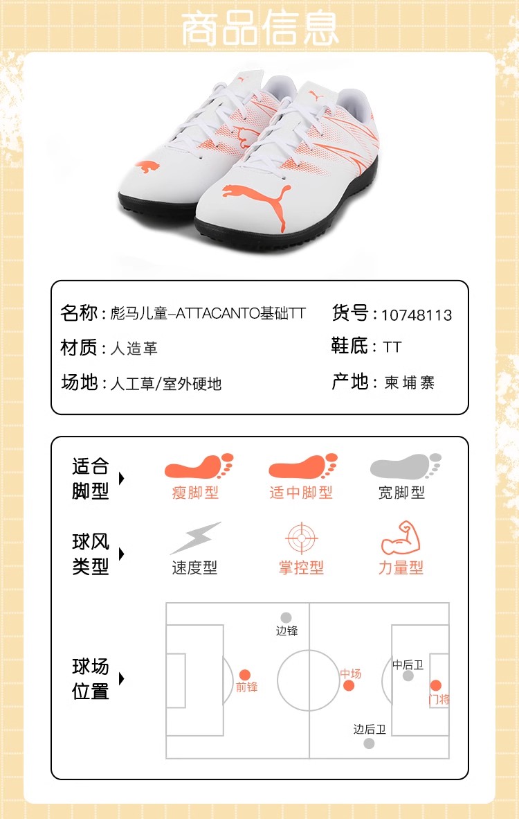 小李子彪马儿童足球鞋男TT碎钉缓震透气青少年专用训练鞋男孩女孩