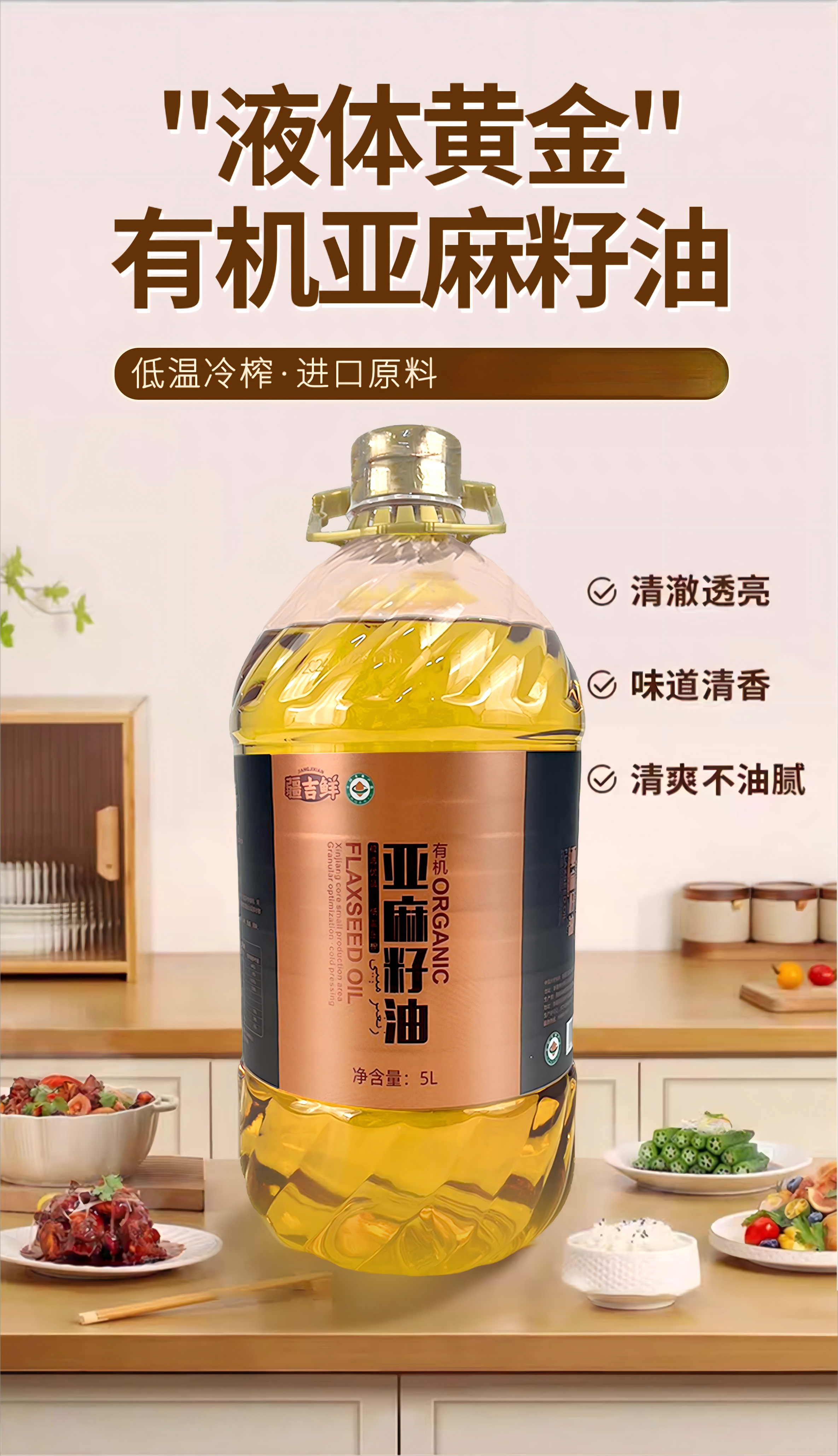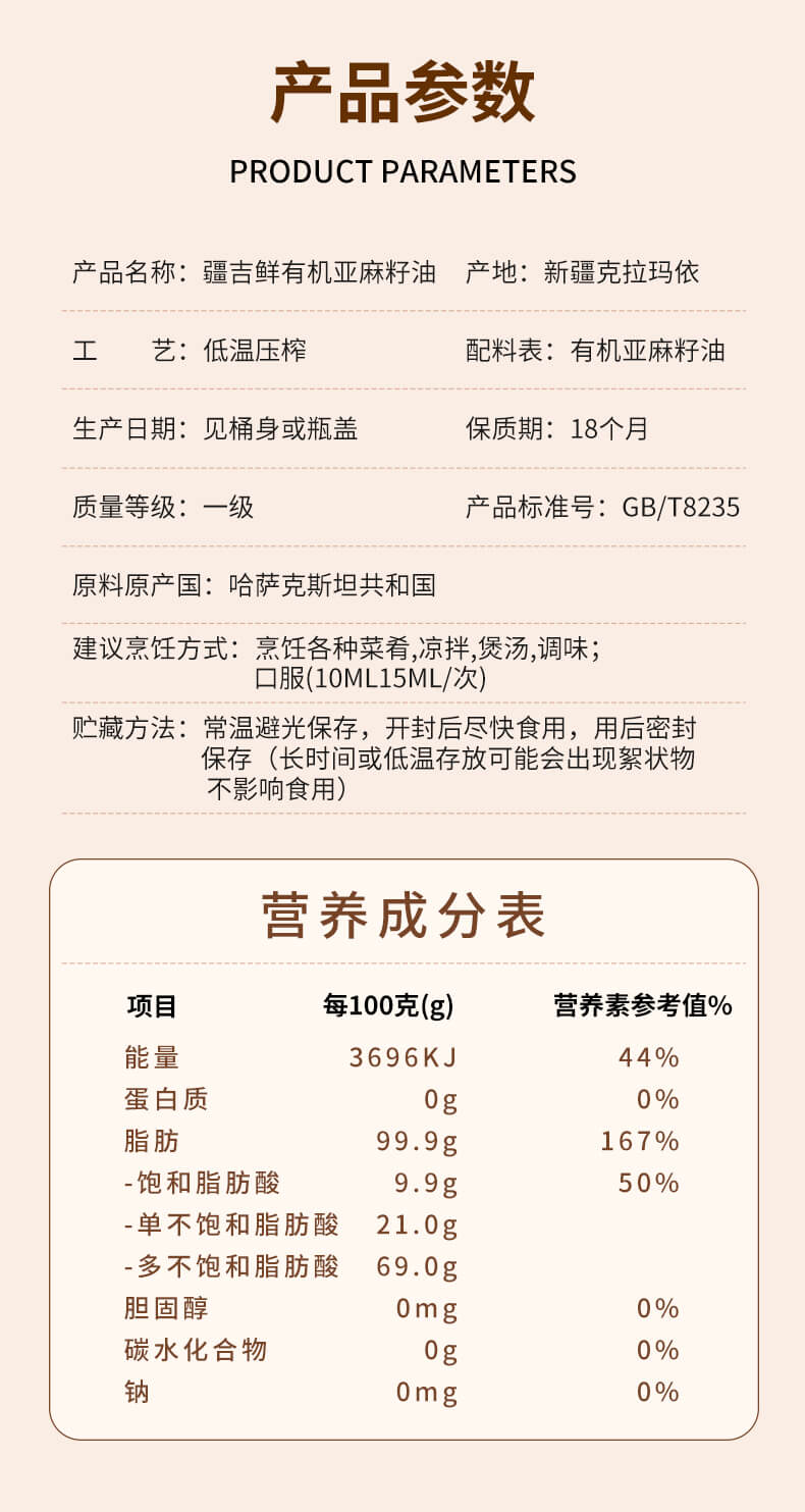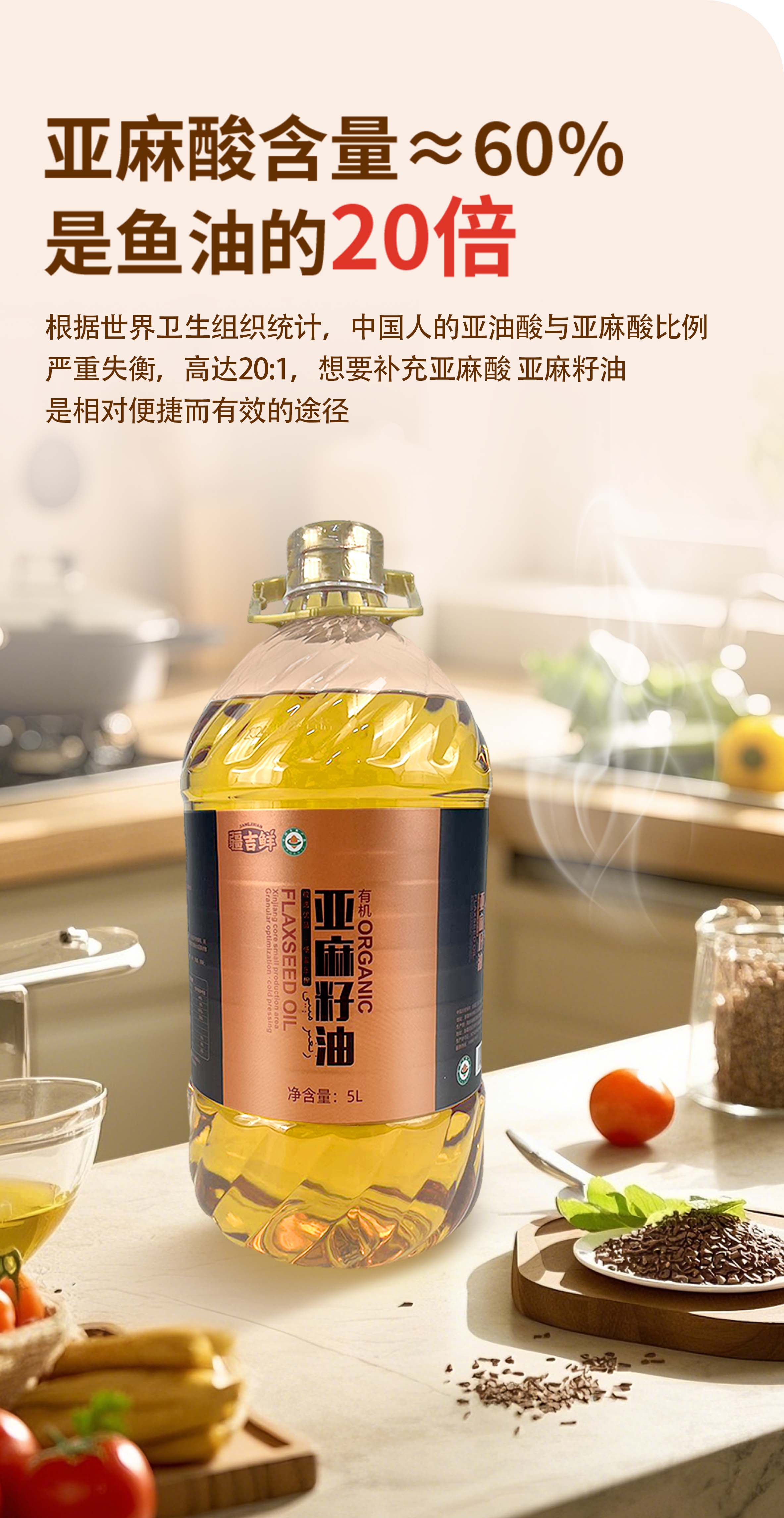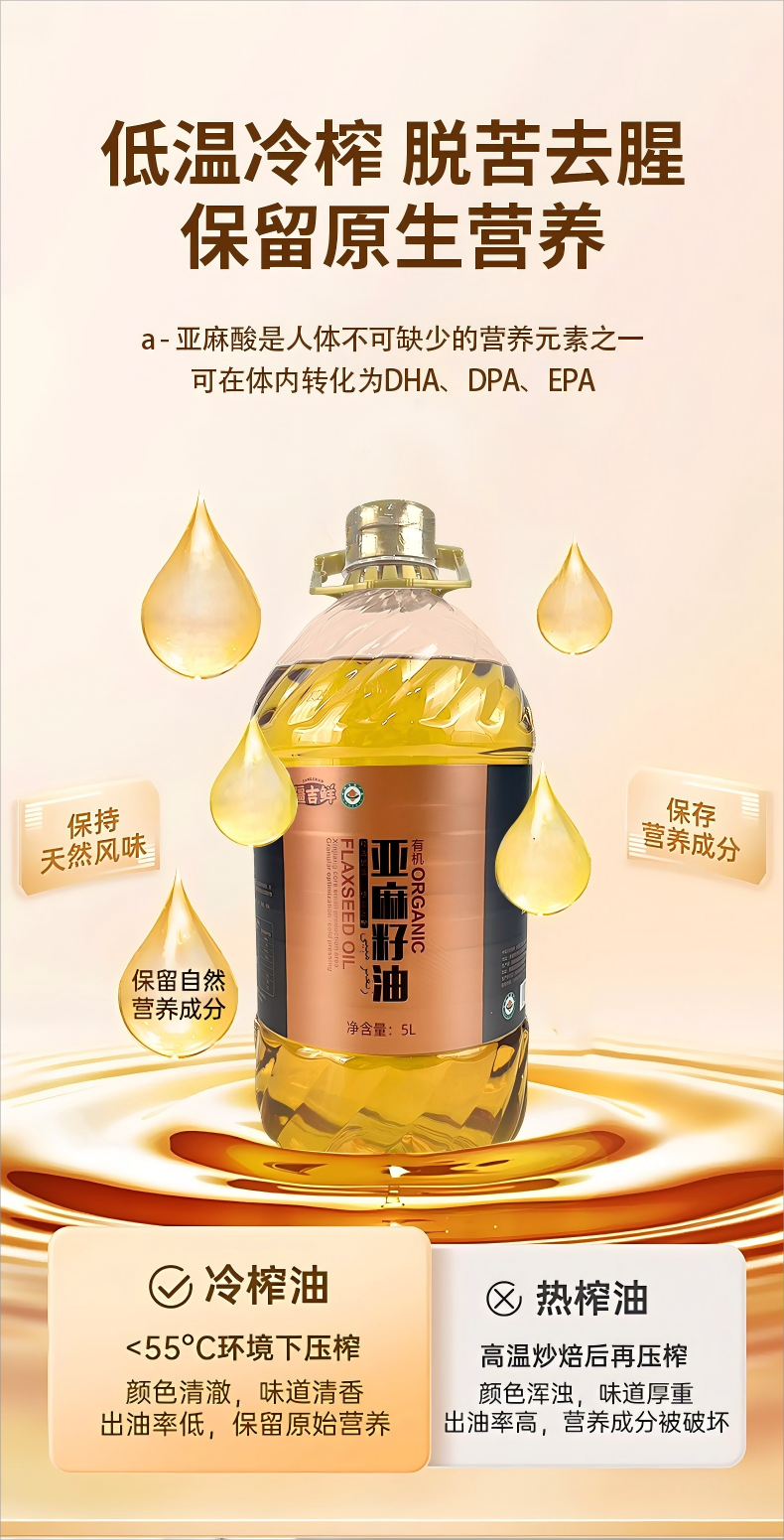 【新疆】新疆疆吉鲜有机亚麻籽油5L