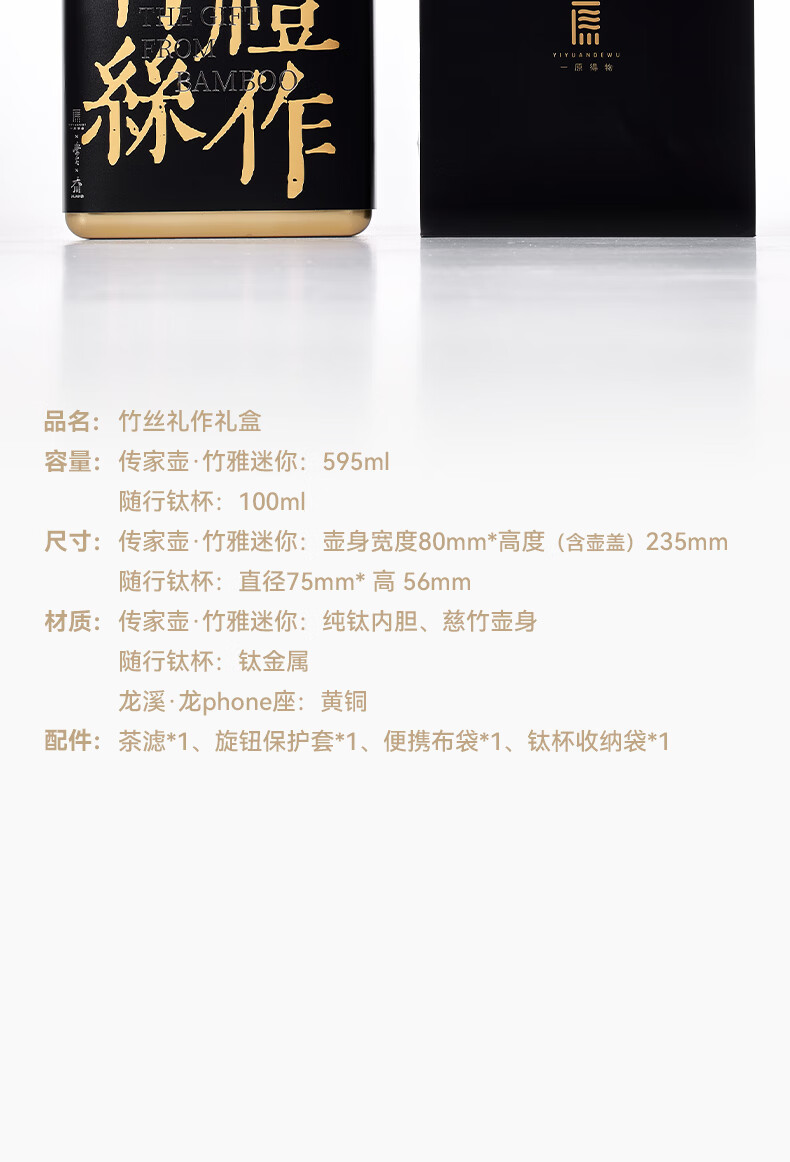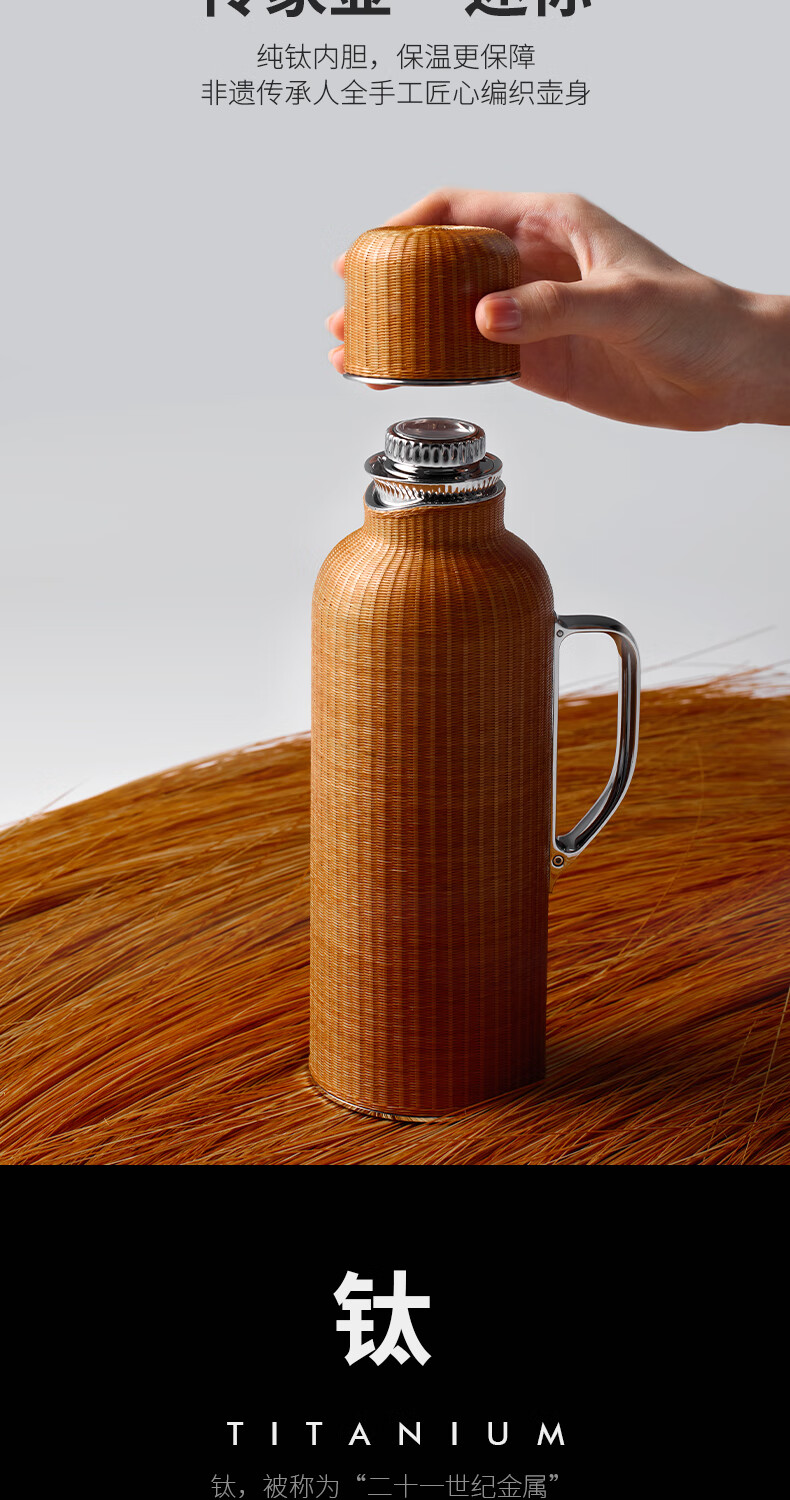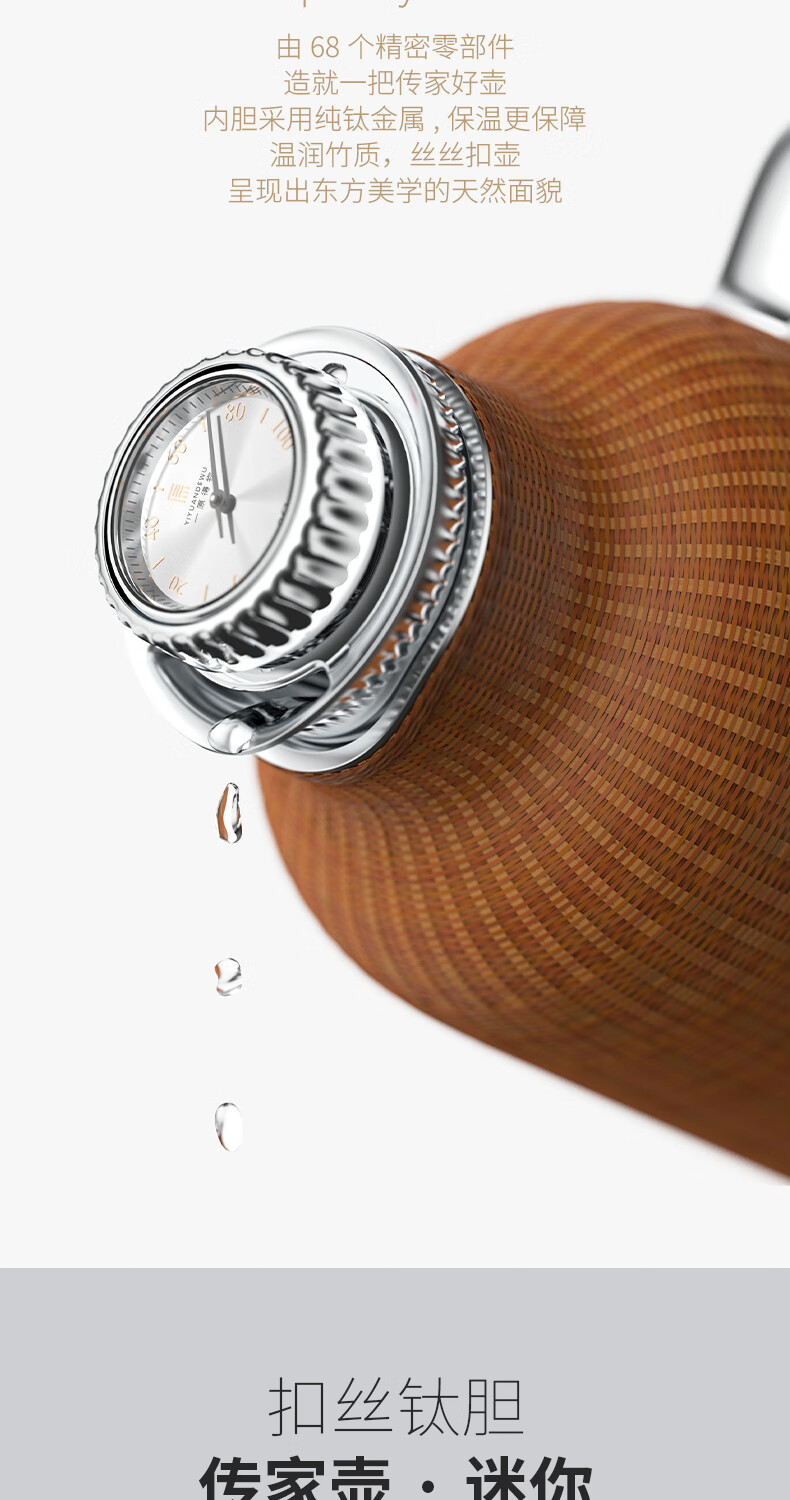 学古一原传家壶·竹雅迷你 非遗扣丝工艺纯钛内胆595ml
