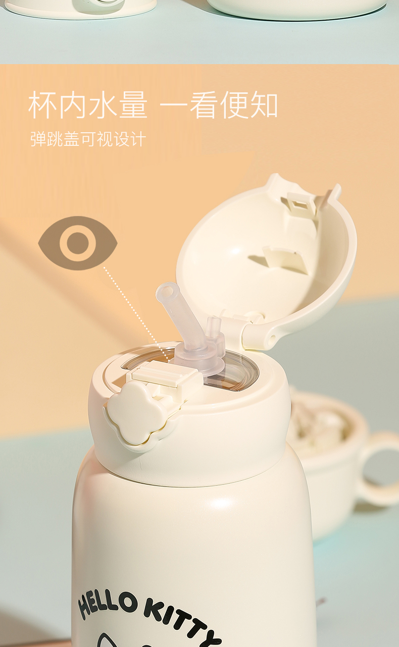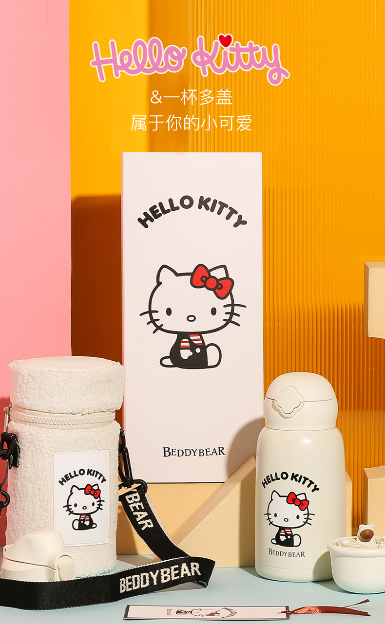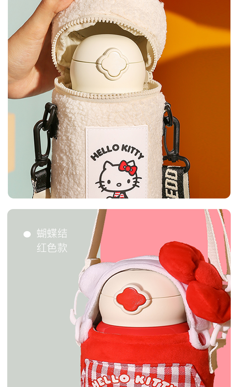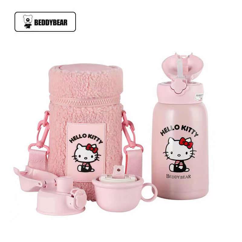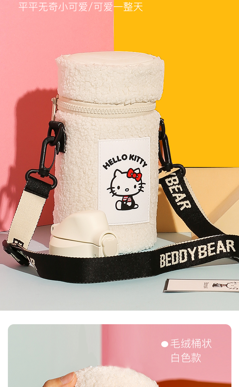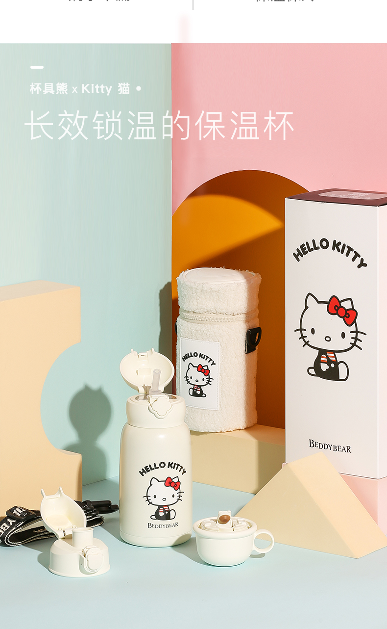 杯具熊儿童保温杯630ML HELLO KITTY毛绒吸管水壶男女高颜值可爱水杯