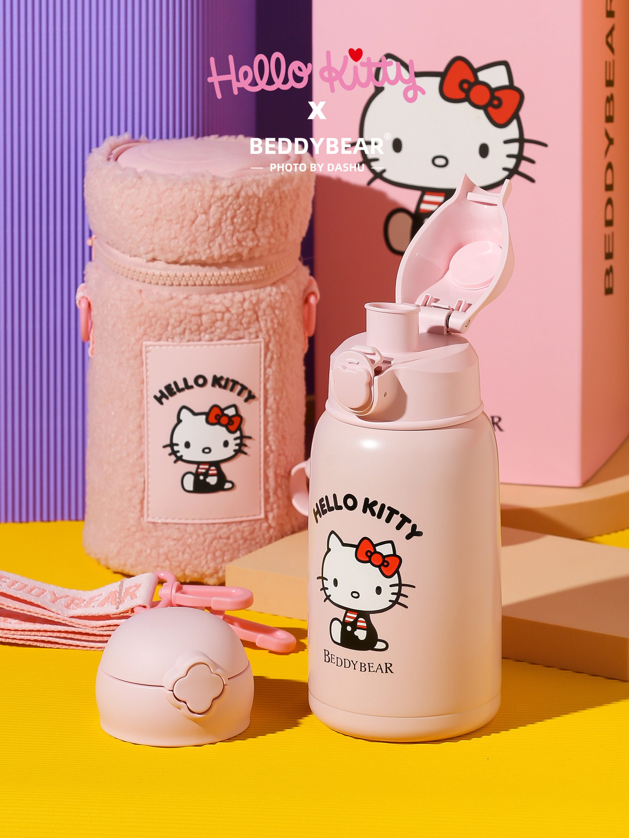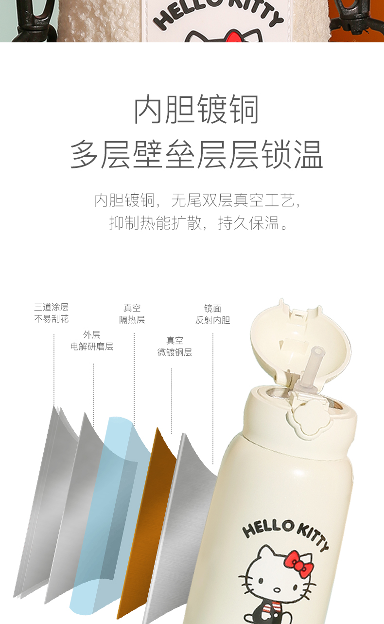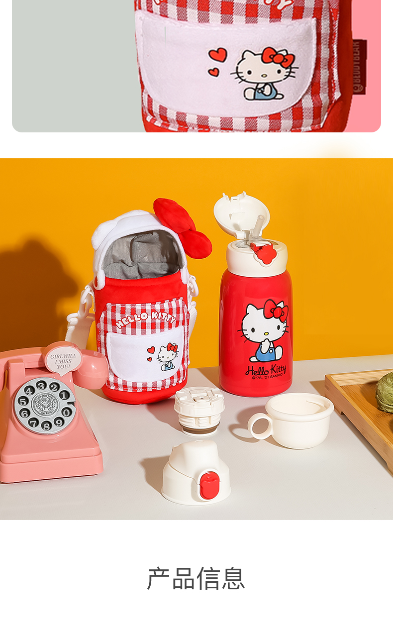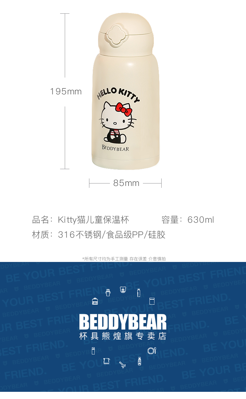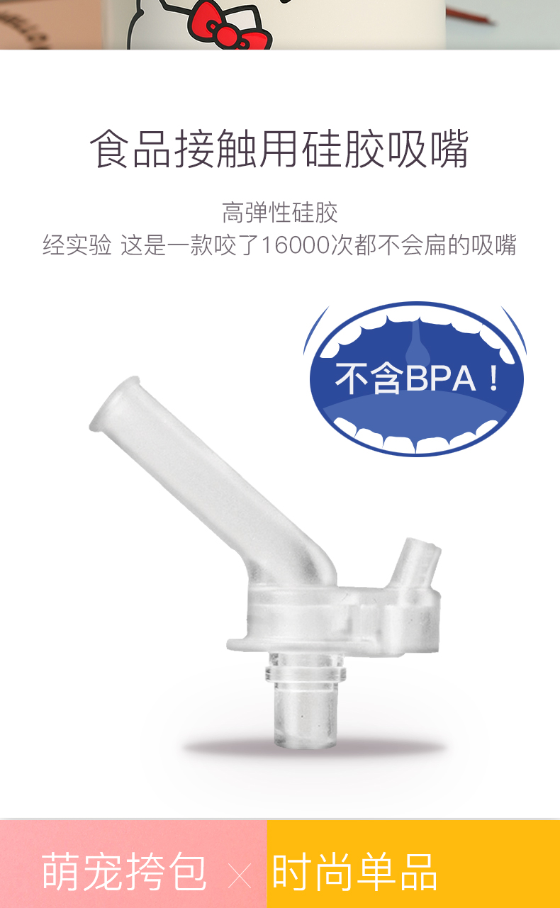 杯具熊儿童保温杯630ML HELLO KITTY毛绒吸管水壶男女高颜值可爱水杯