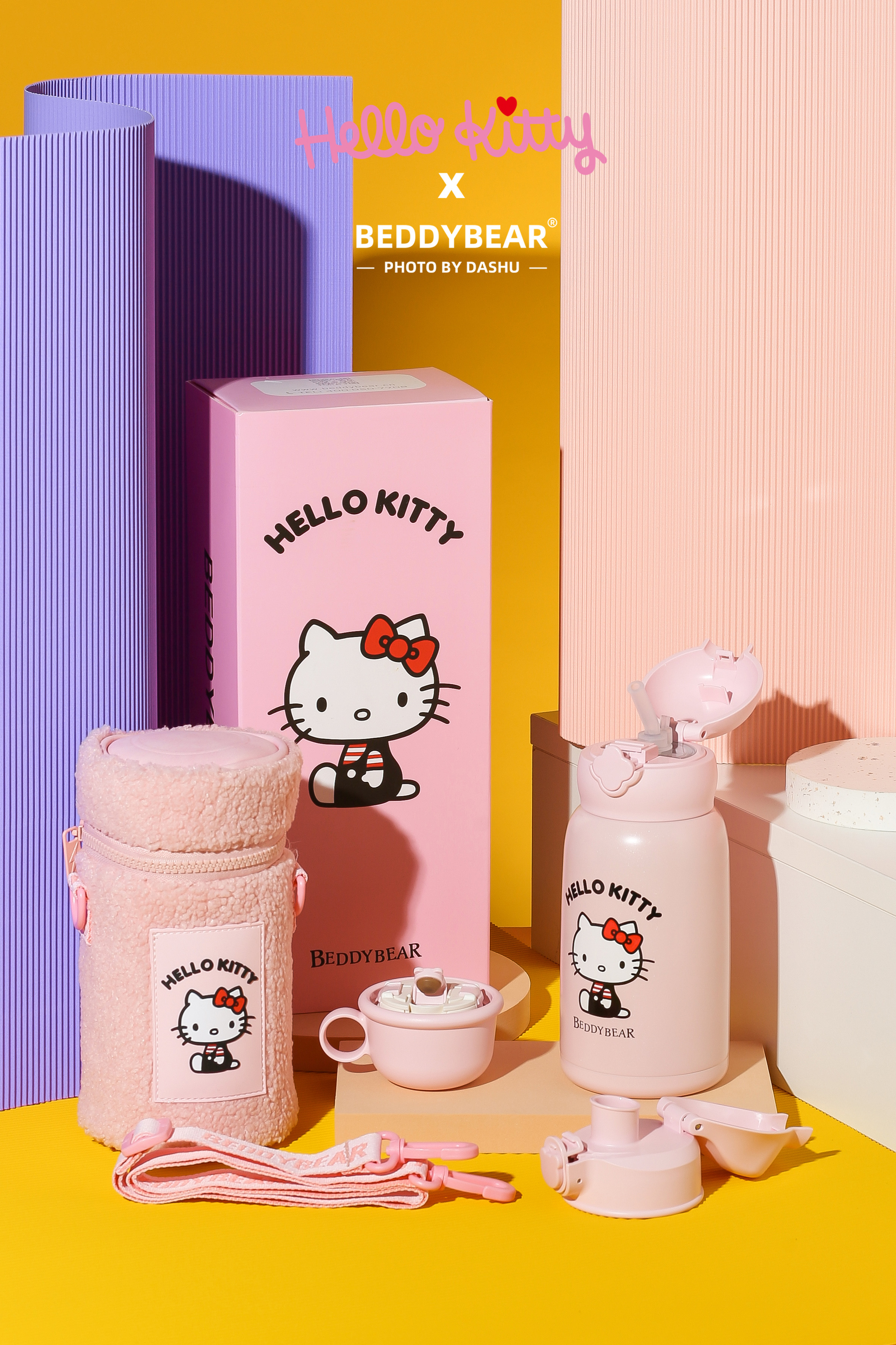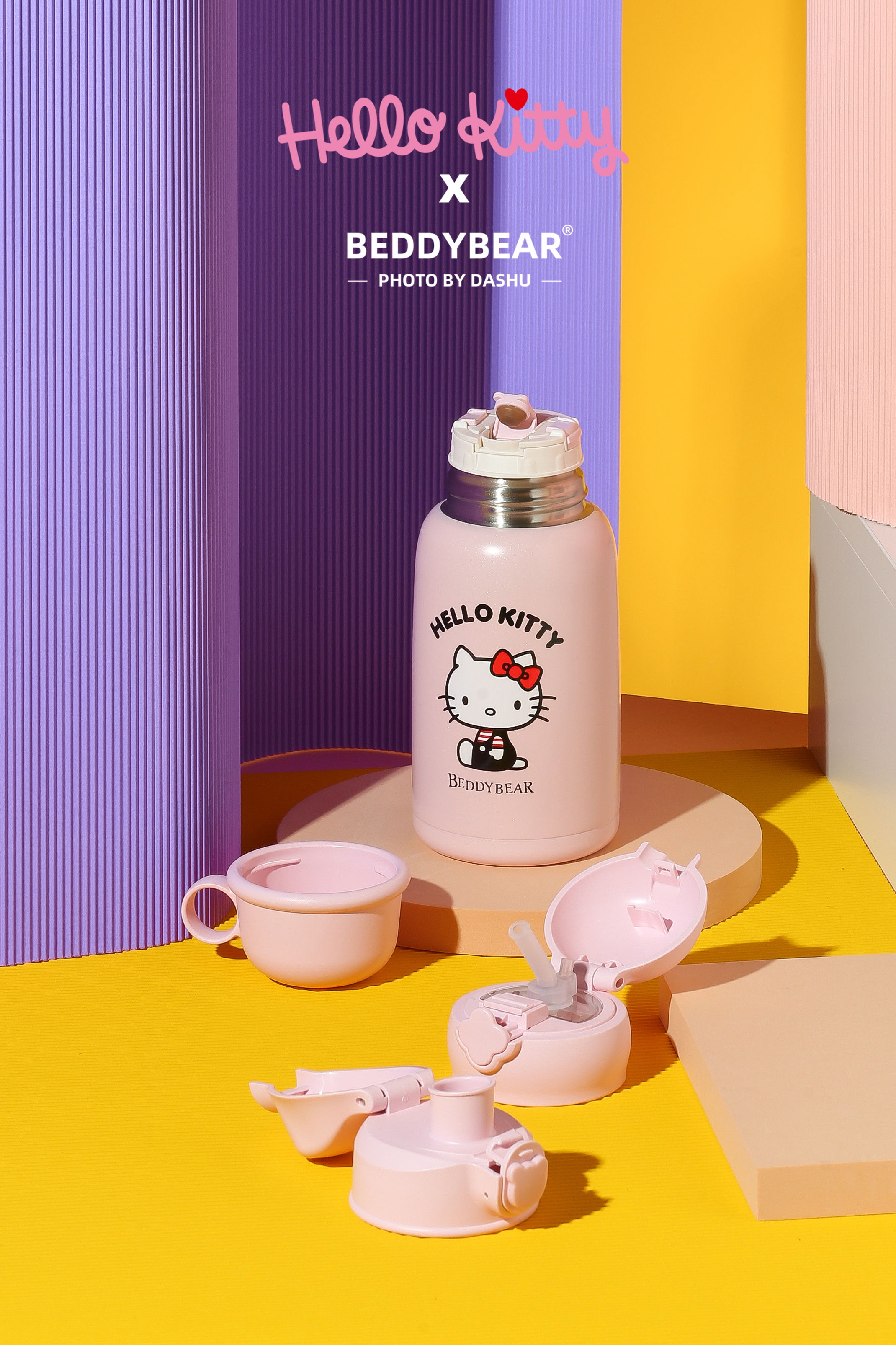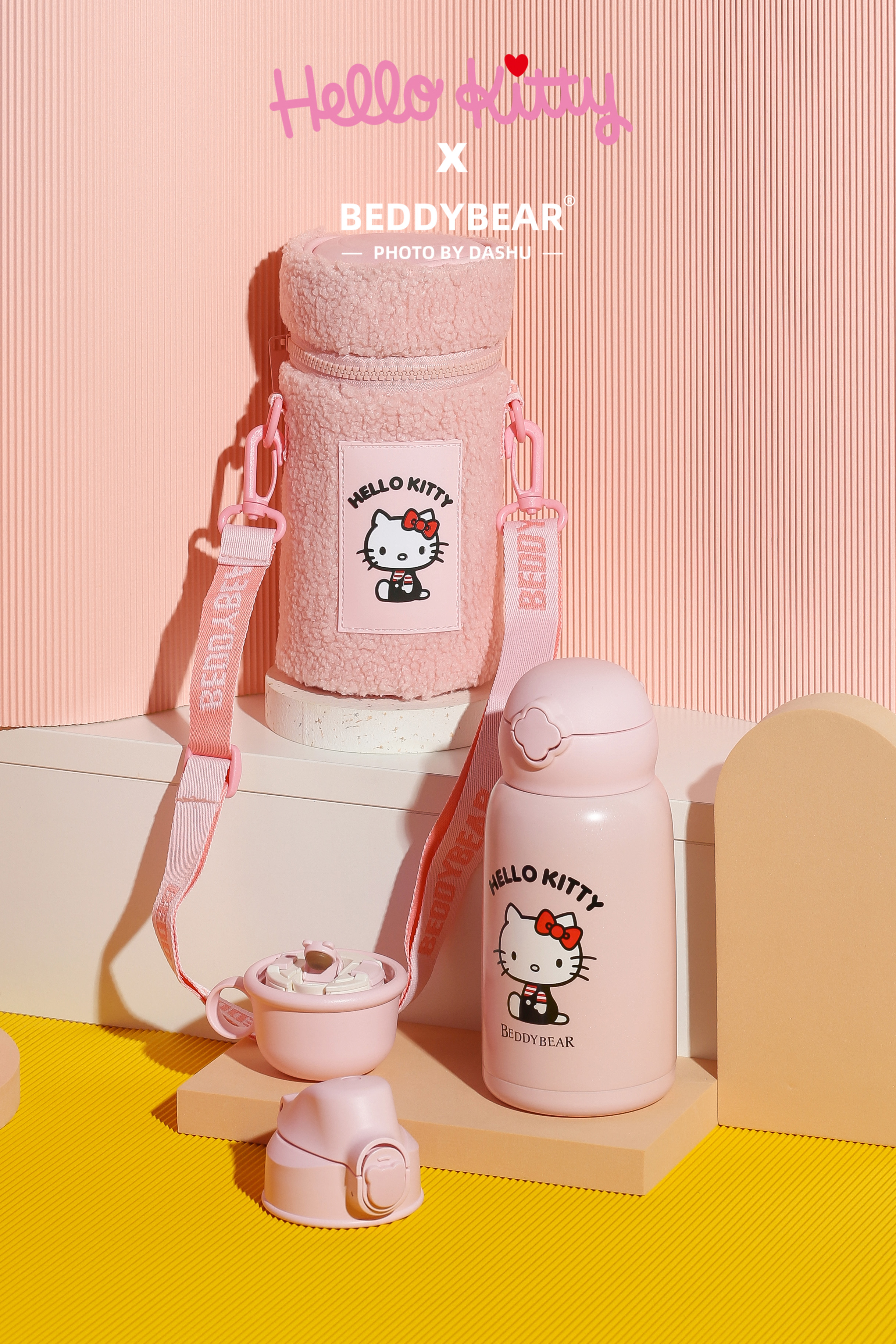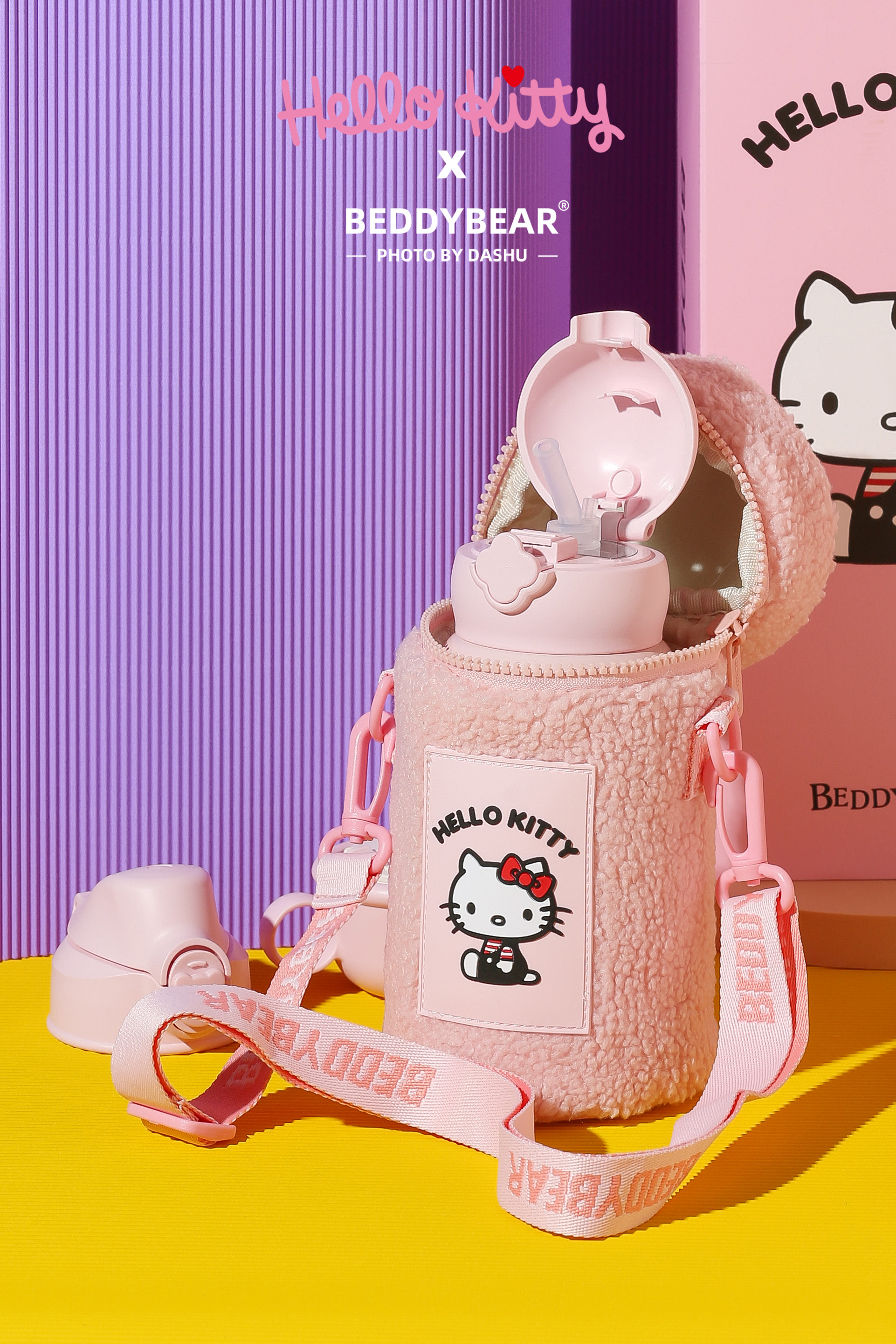 杯具熊儿童保温杯630ML HELLO KITTY毛绒吸管水壶男女高颜值可爱水杯