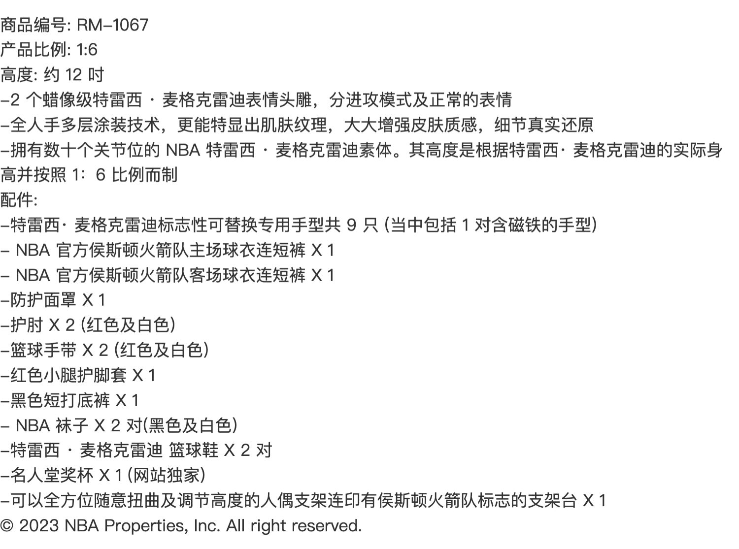 ENTERBAY 火箭队 特雷西麦格雷迪 收藏手办 1/6