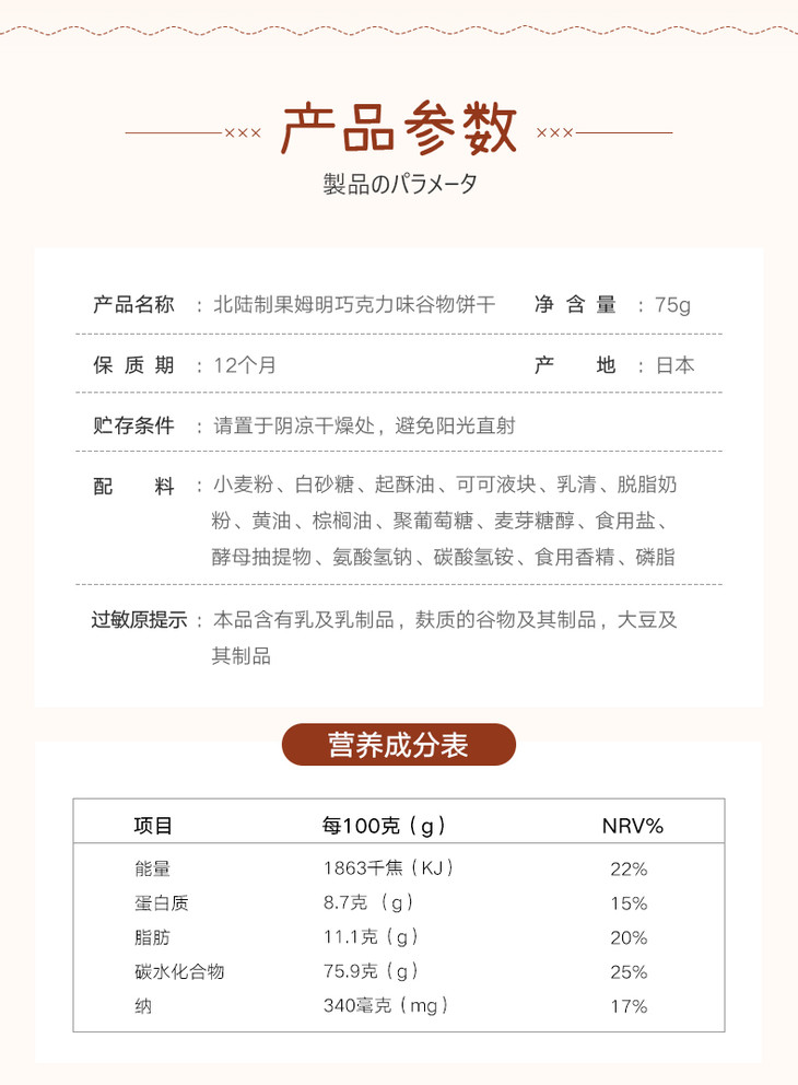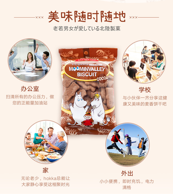 日本进口hokka北陆制果姆明 巧克力味谷物小饼干零食 75g(001713)