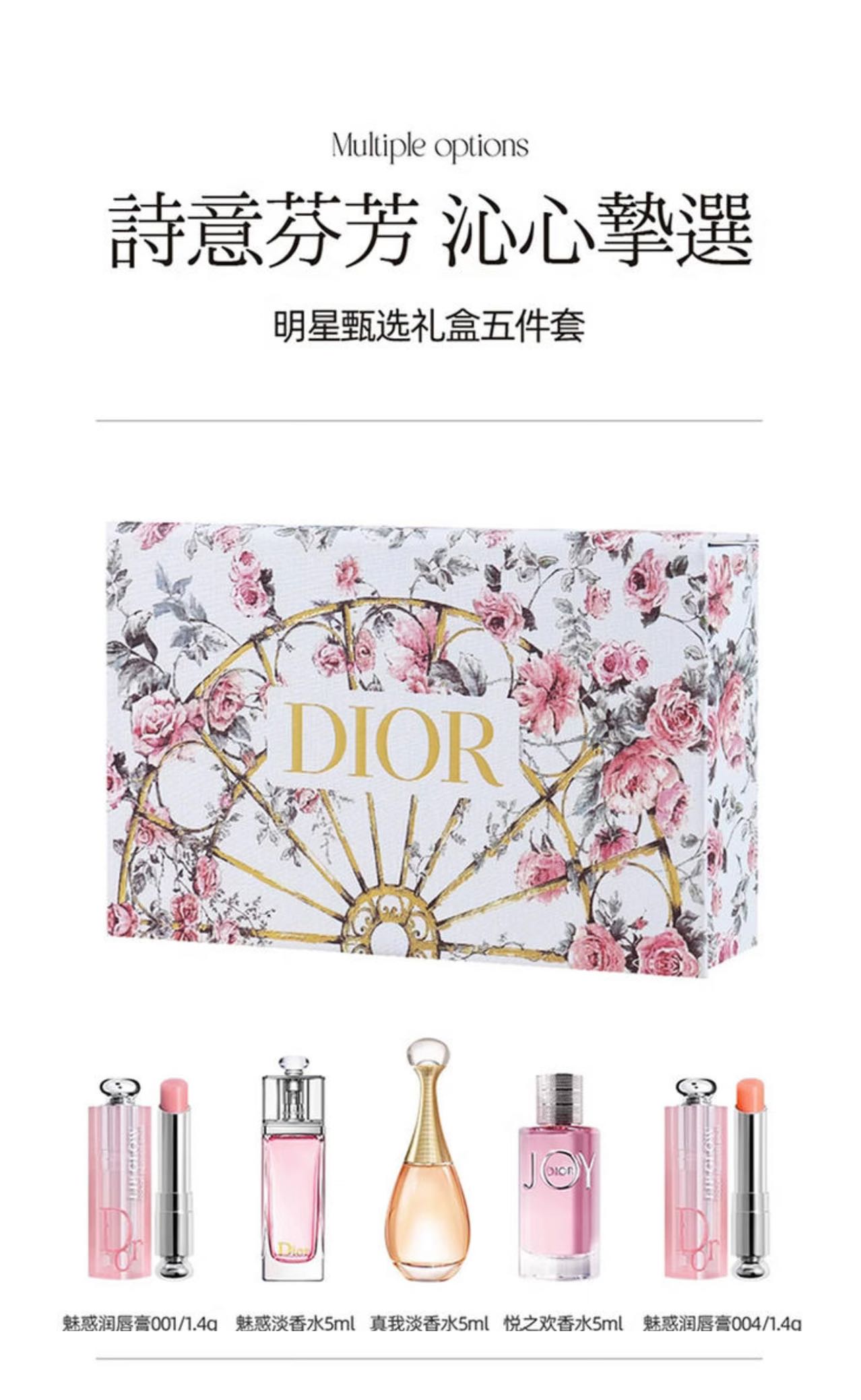 dior克丽丝汀迪奥魅惑润唇膏香水套装迷你版 DIOR小样五件套001004唇膏1.4g魅惑真我悦之欢5ml