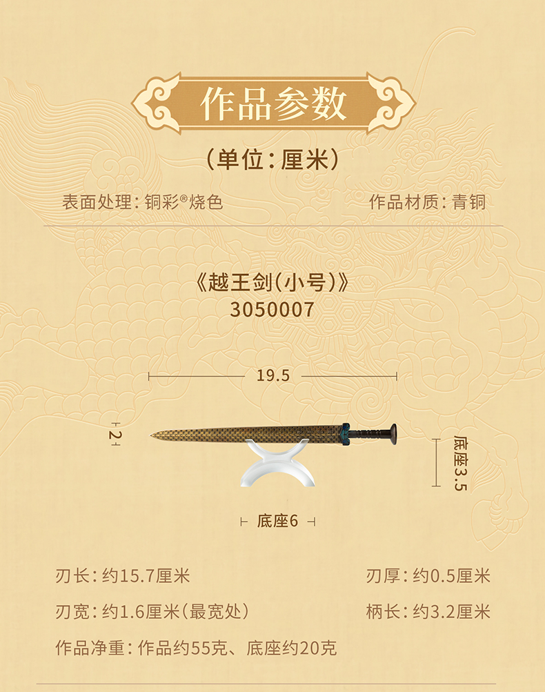 铜师傅《越王剑》古风越王勾践模型摆件 书房装饰收藏礼品工艺品