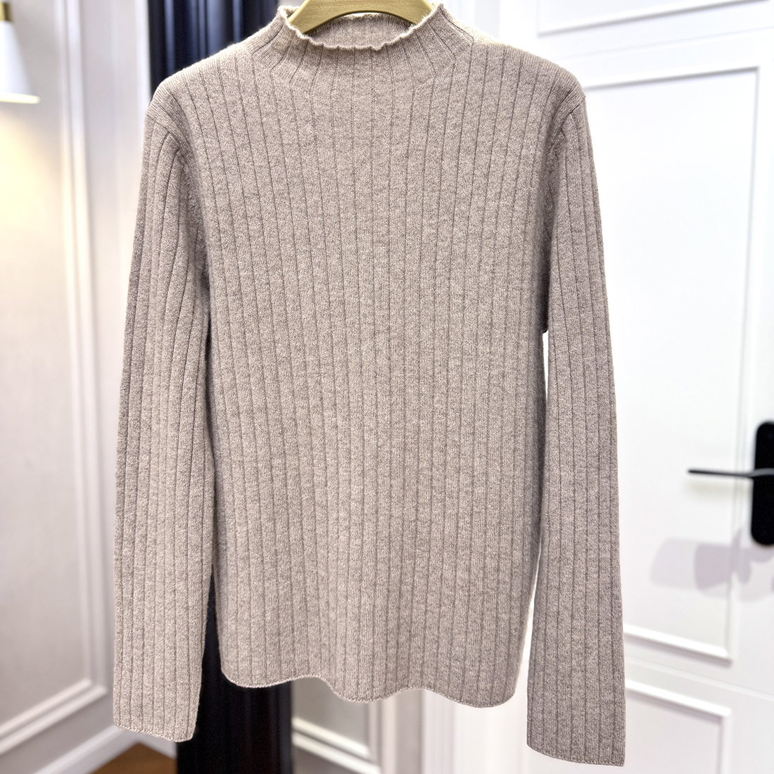 (康赛妮A类纱线)火桐hooton 半高领山羊绒坑条打底衫25A650