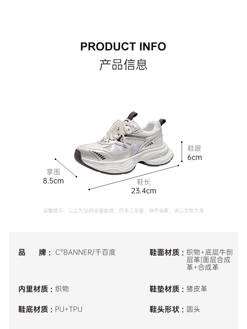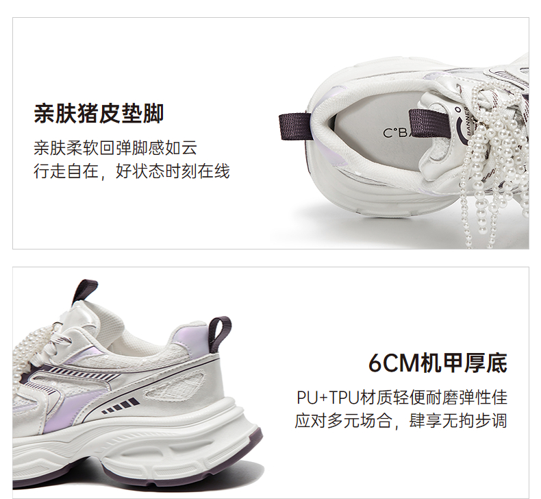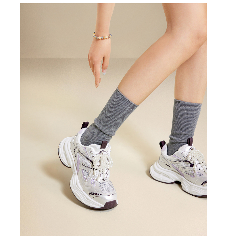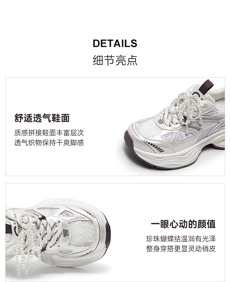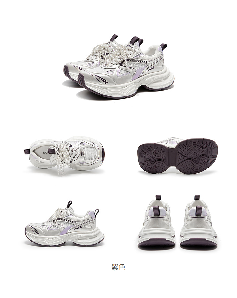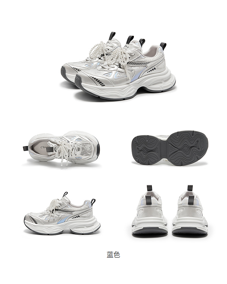 千百度银色珍珠厚底老爹鞋女款网面时尚运动休闲鞋A25385526