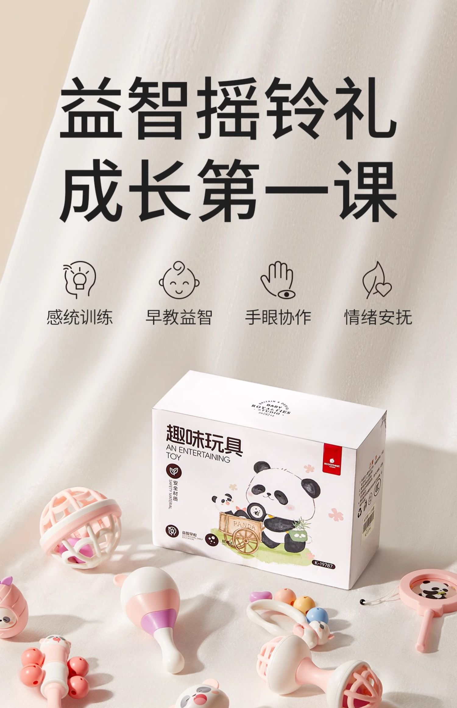 科巢新生婴幼儿玩具0到6个月以上1岁小月龄宝宝早教益智手摇铃