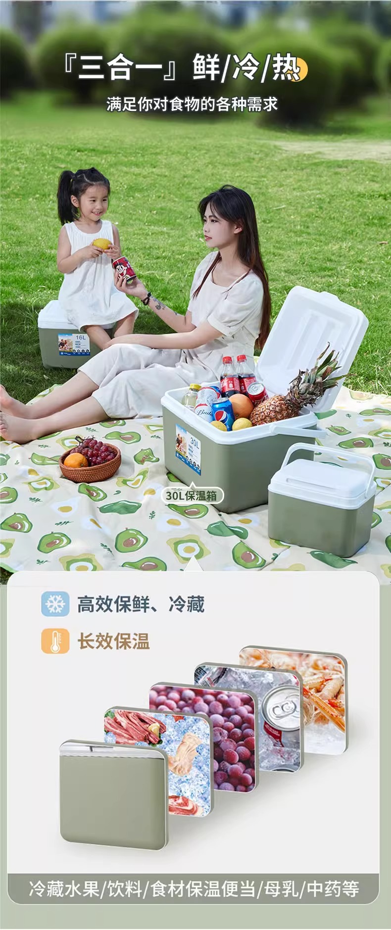 【冰暖保鲜!户外露营野餐必备】露营野餐冷藏冰箱,手提保温箱冰桶,保鲜保冷保暖,新鲜成分锁定,承重力强,多功能设计,环保食品级材质;24小时长效保鲜,处处温馨!