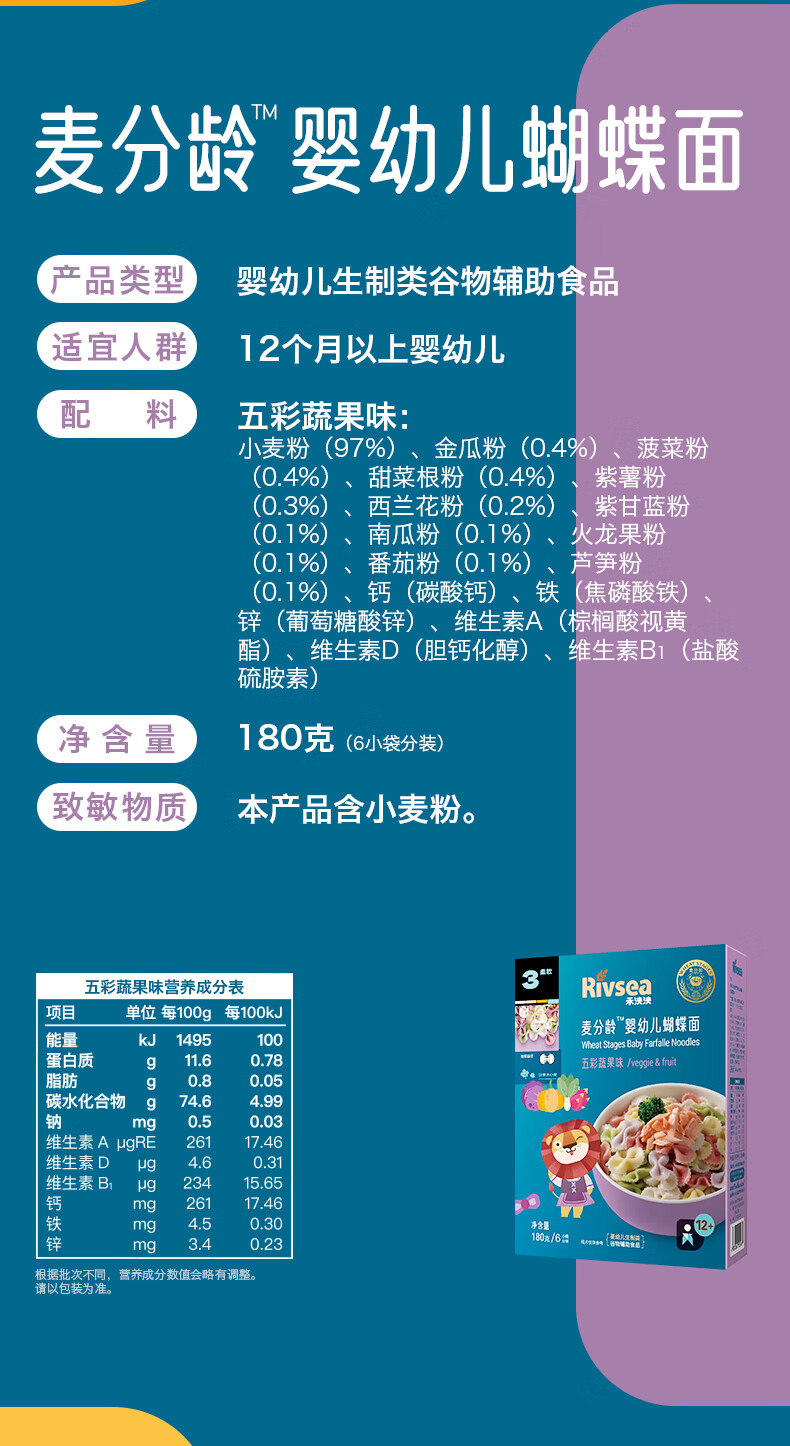 禾泱泱麦分龄 婴幼儿蝴蝶面 五彩蔬果味 12月推荐