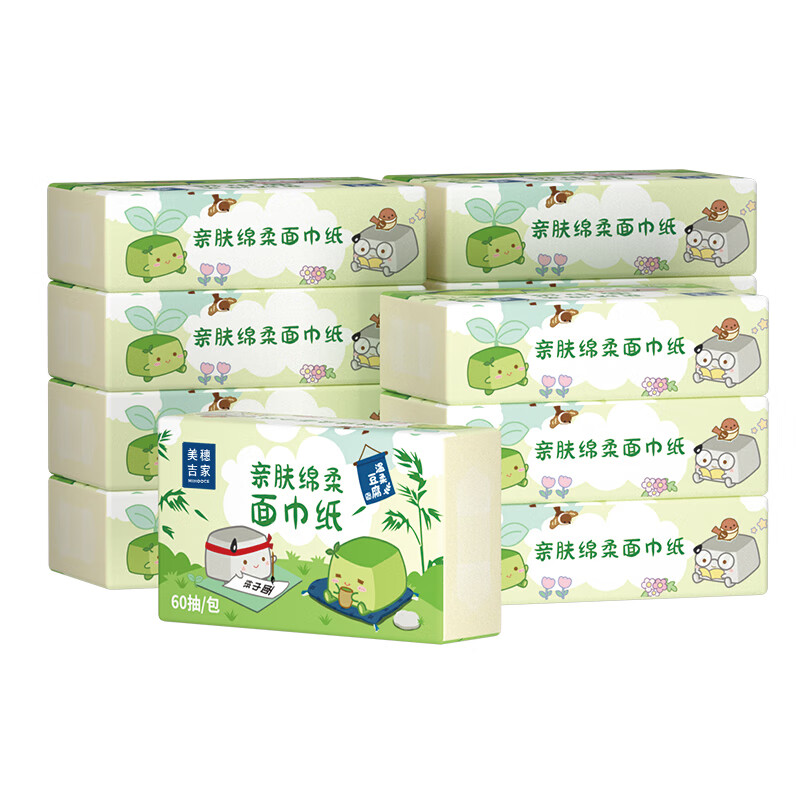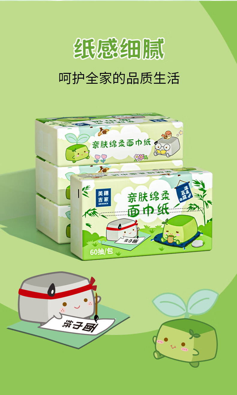 美穗吉家 亲肤绵柔面巾纸 原生竹浆4层60抽*12包