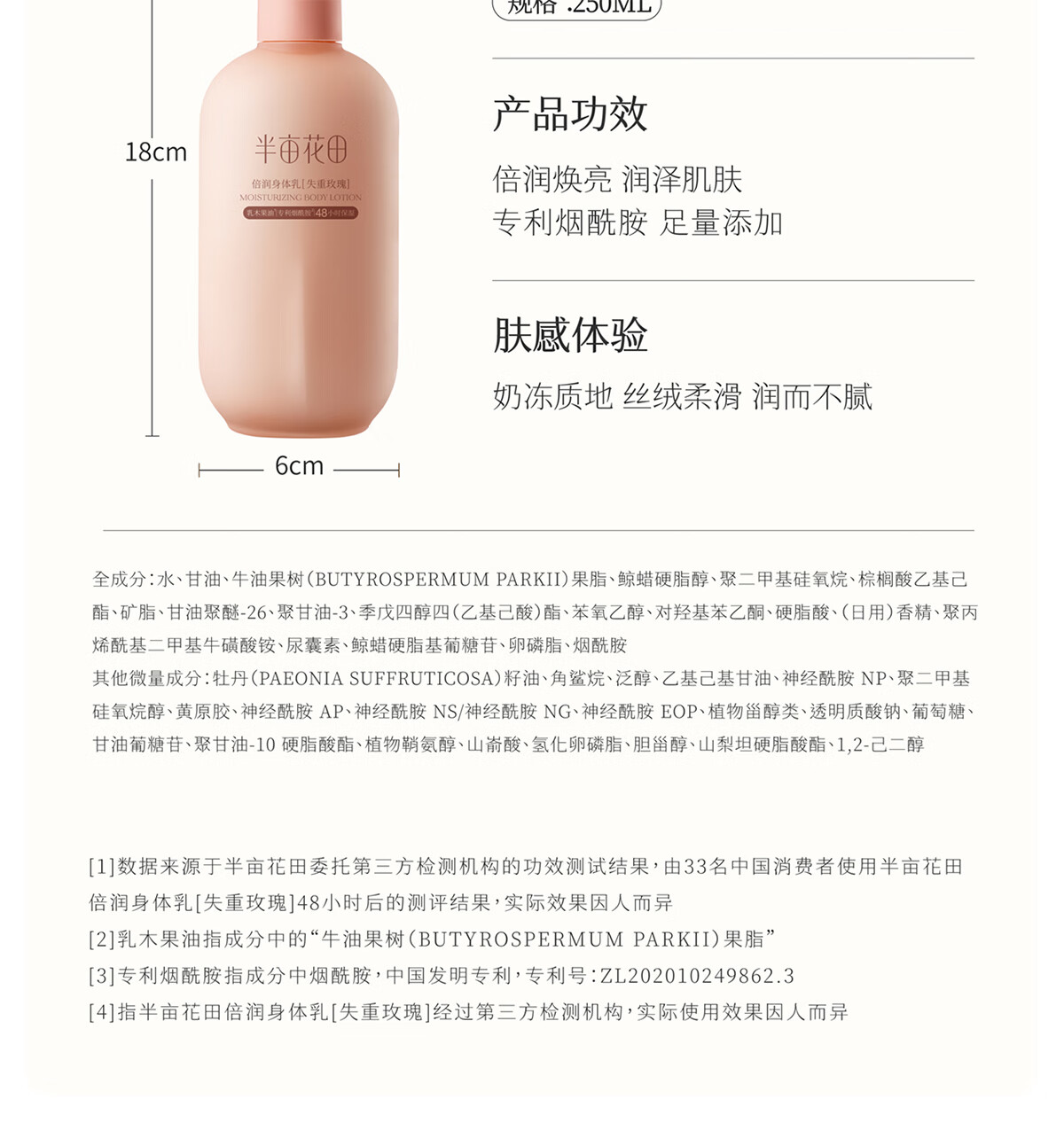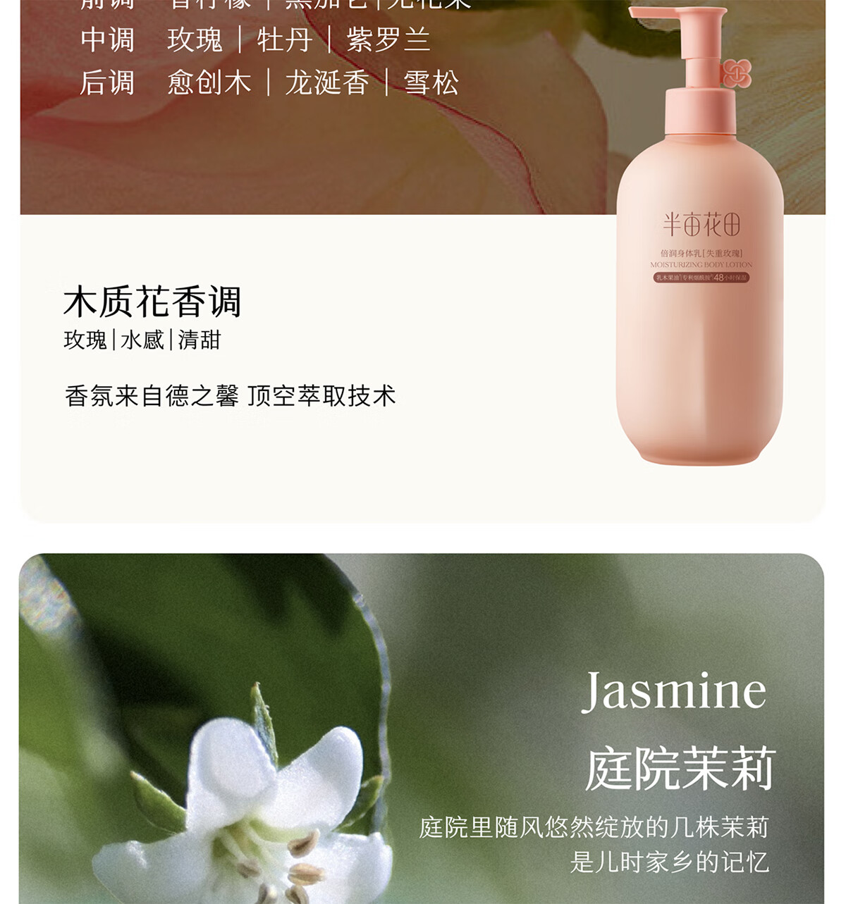 半亩花田烟酰胺身体乳茉莉滋润保湿持久留香浴后乳润肤露250ml 100062155050