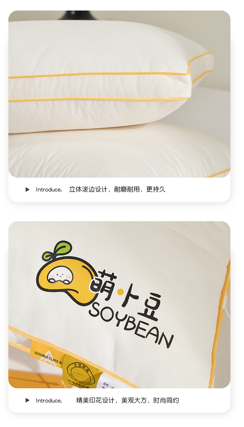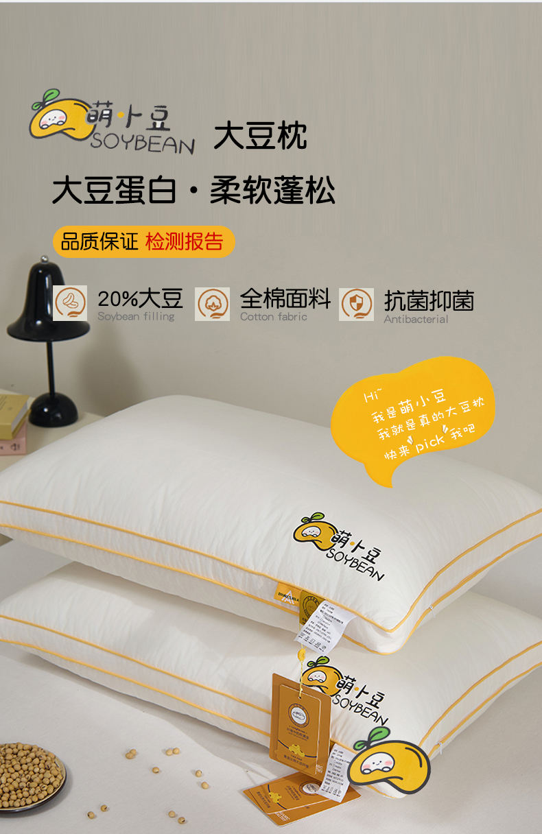 自然醒A类萌小豆亲子枕全棉大豆纤维枕头枕芯儿童学生宿舍护颈椎助睡眠一对装家用颈椎枕XK
