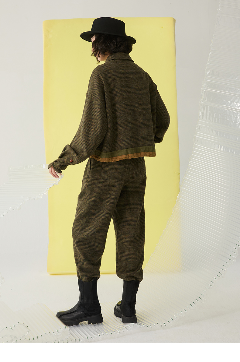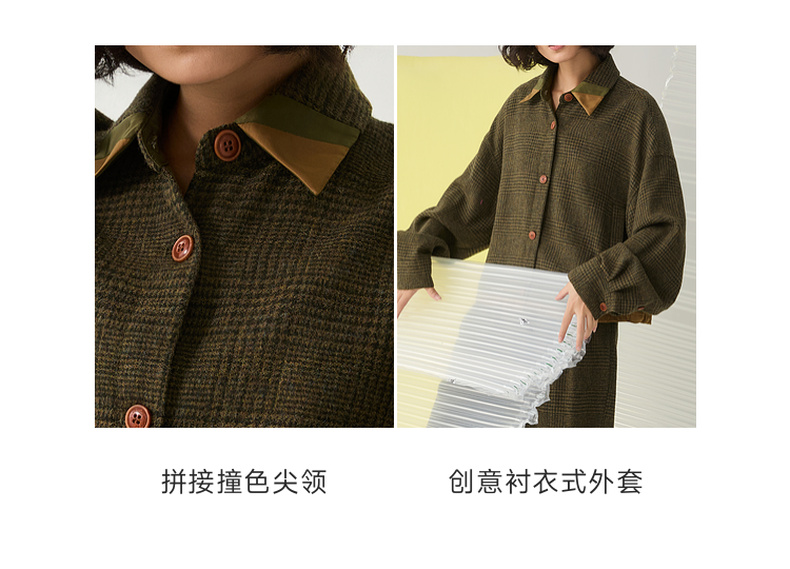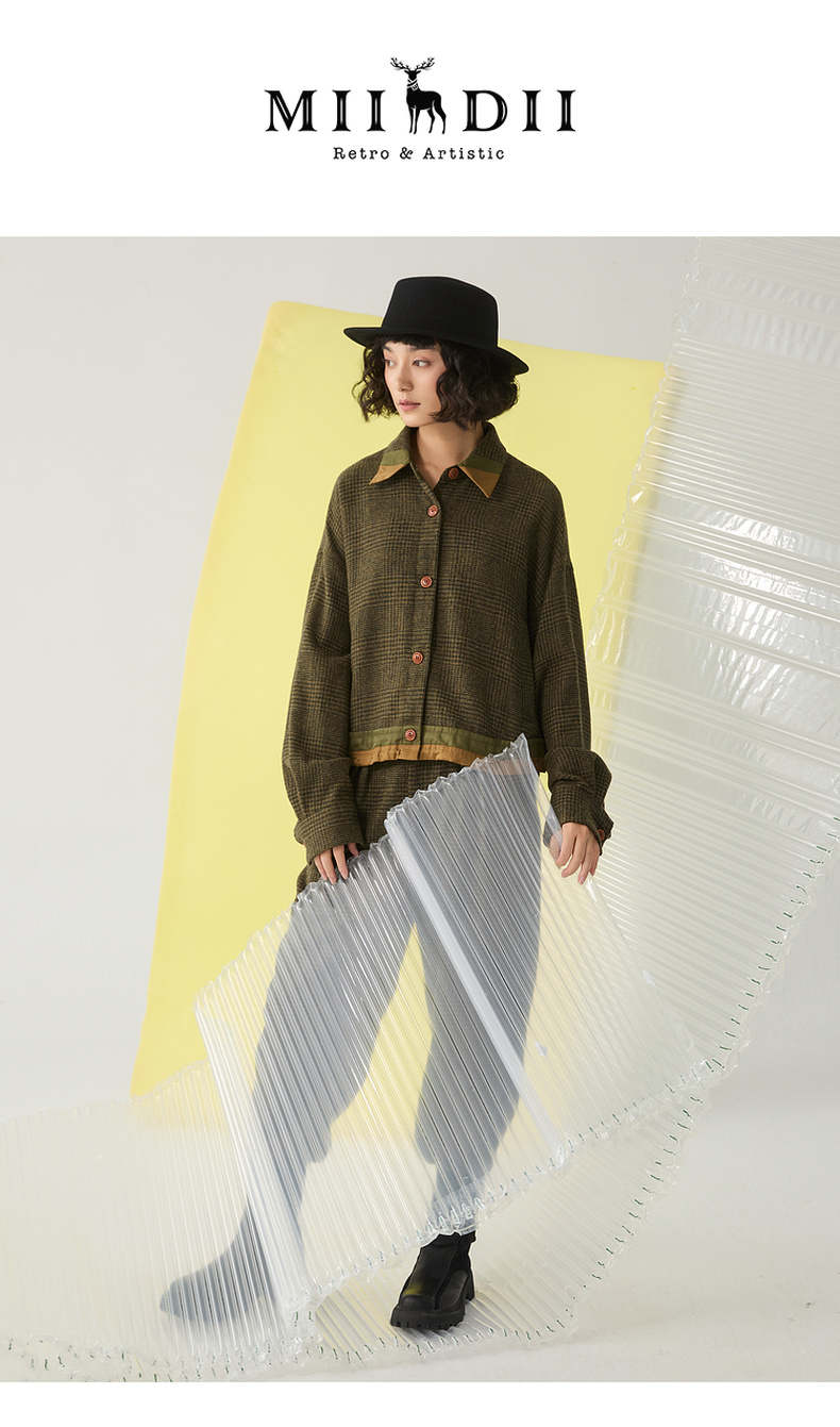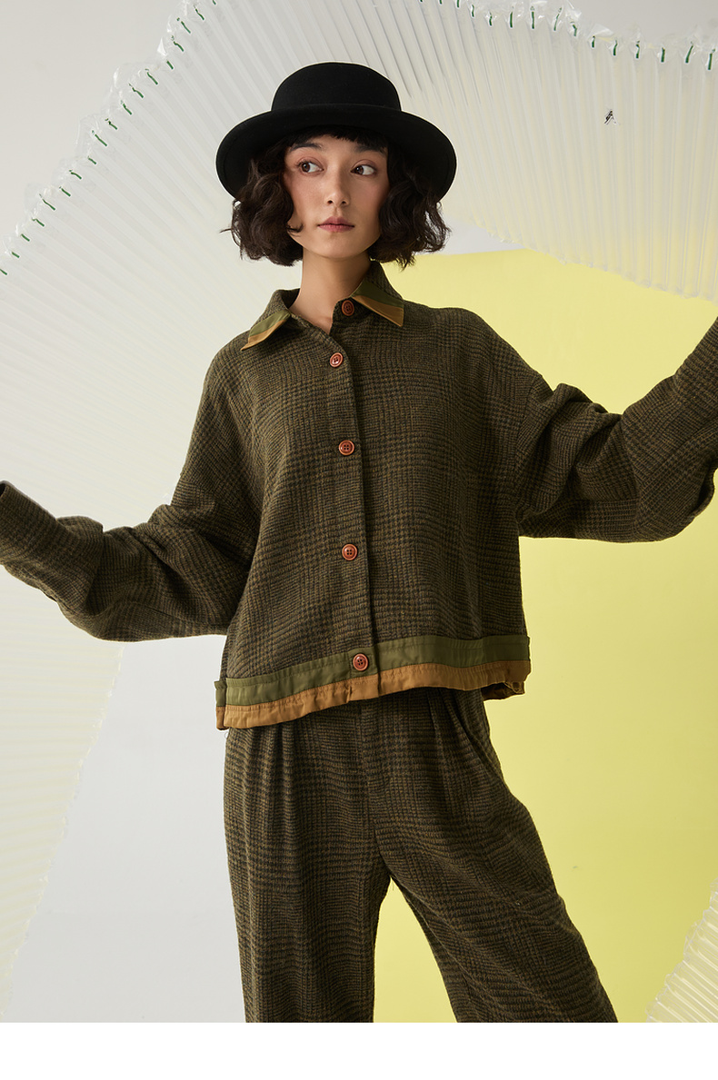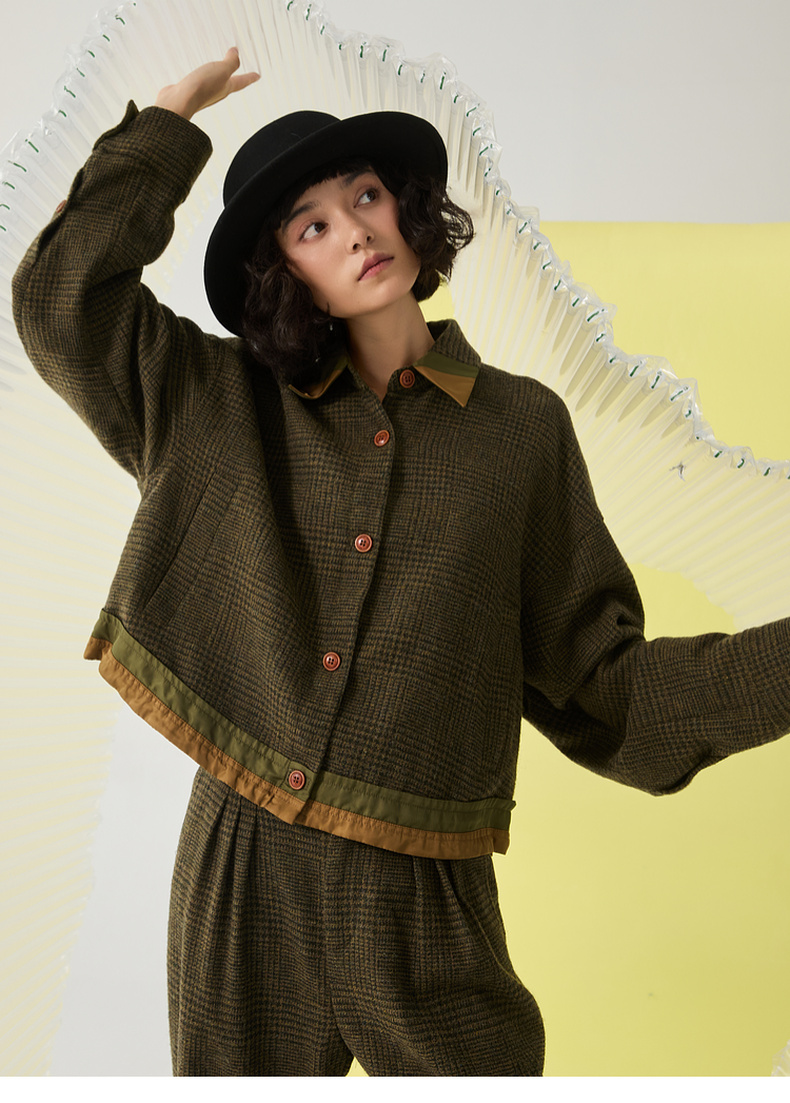 谜底格纹外套女2024冬季新品复古风宽松挺阔设计感夹克244MW1672