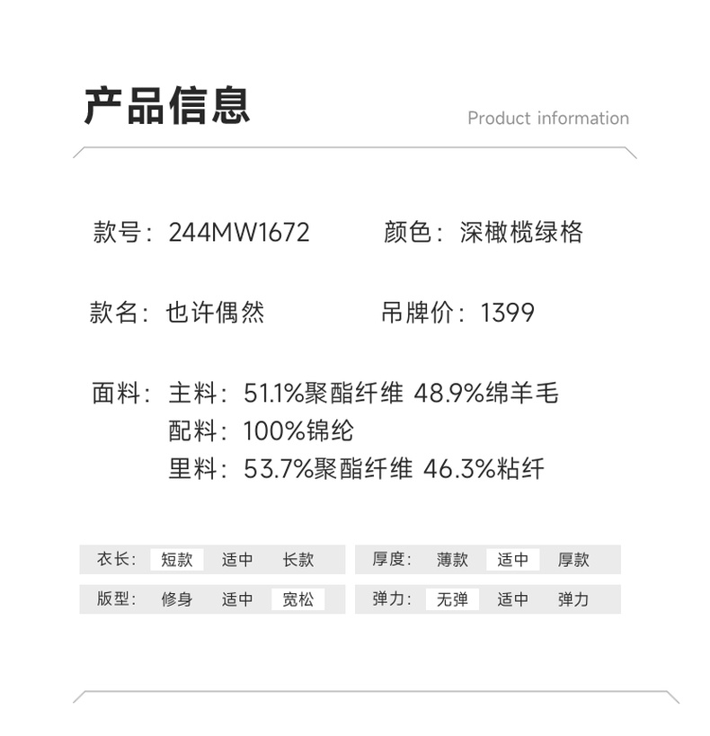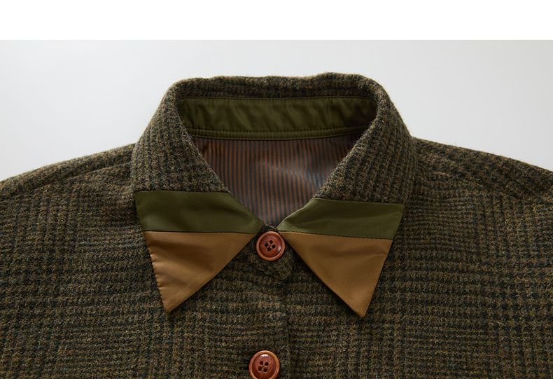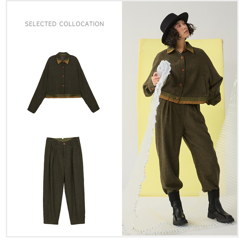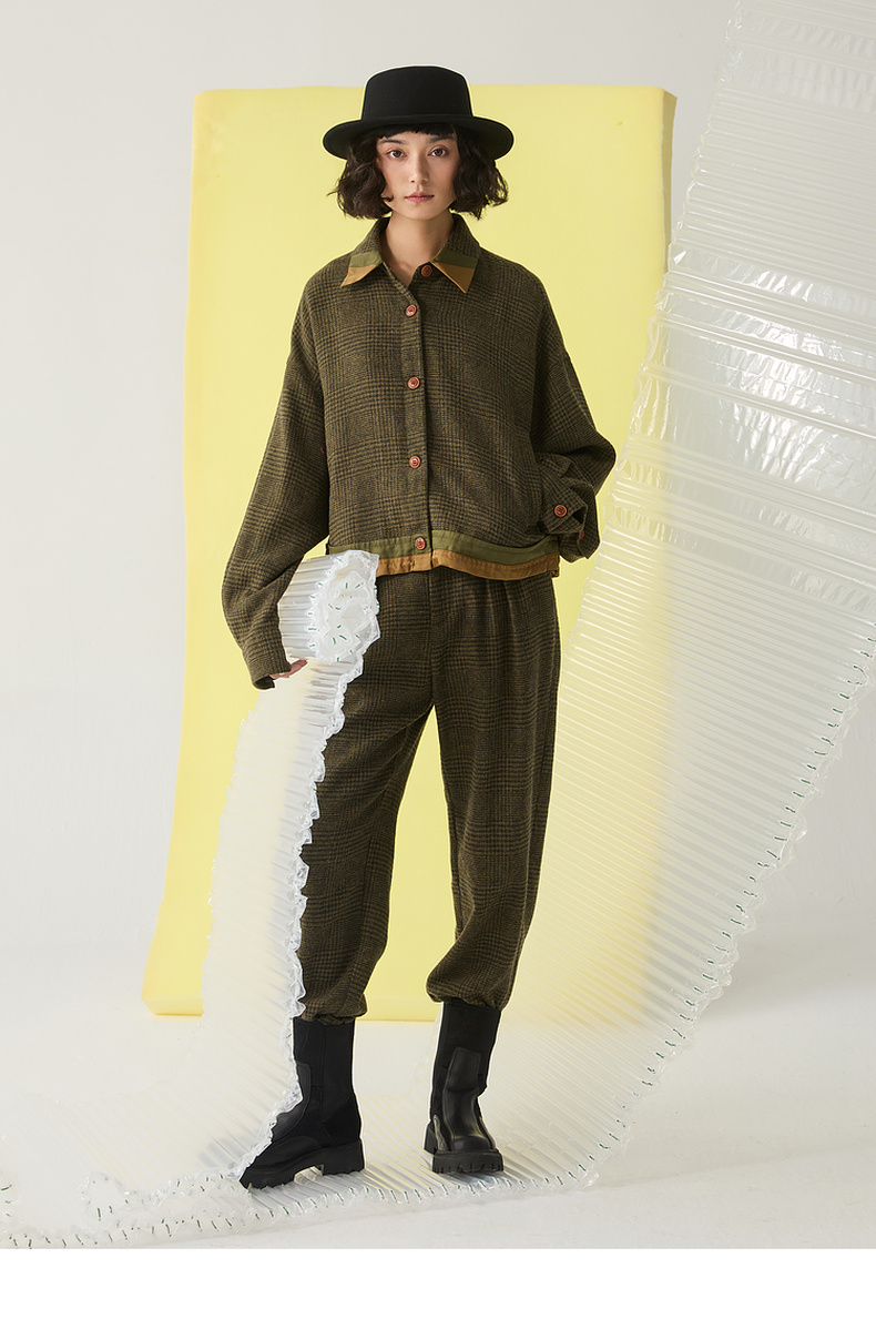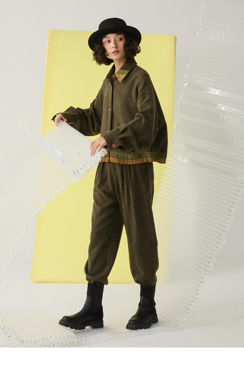 谜底格纹外套女2024冬季新品复古风宽松挺阔设计感夹克244MW1672