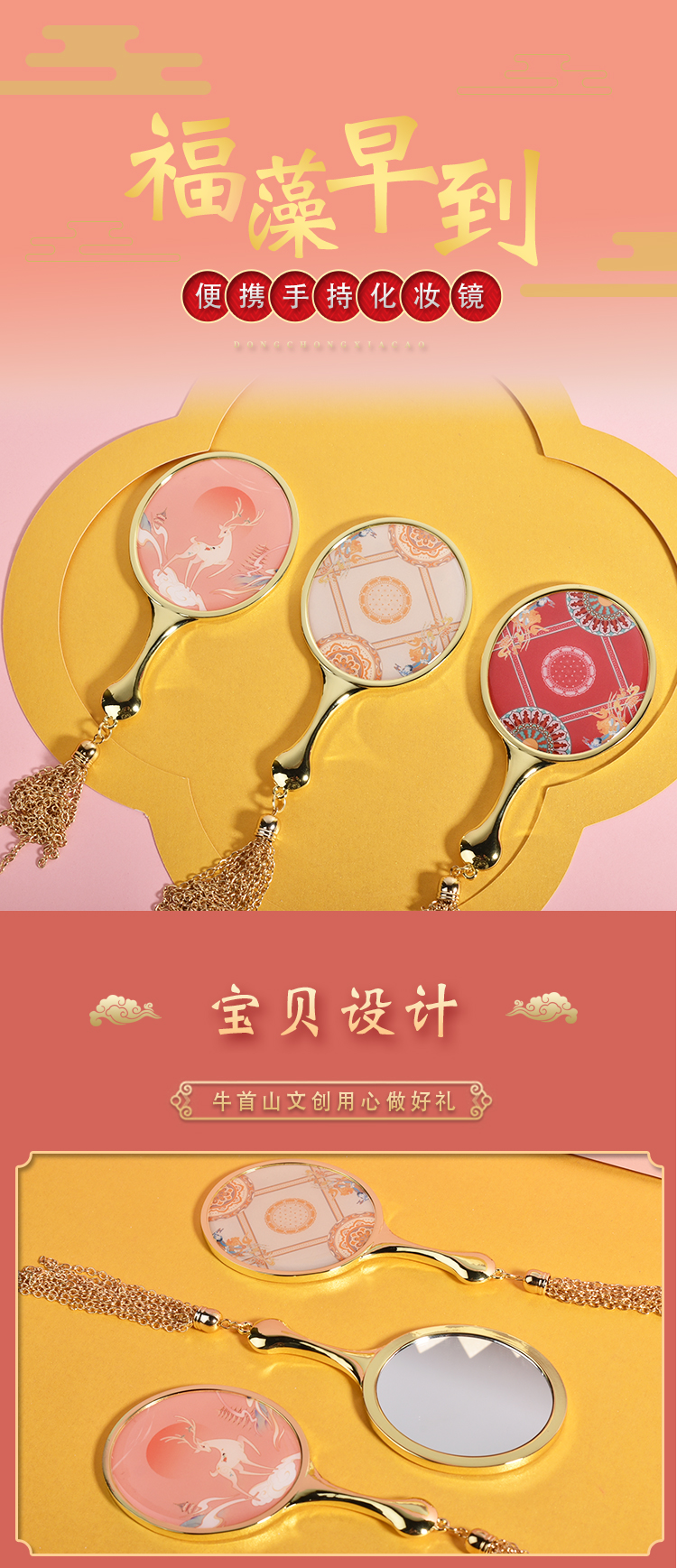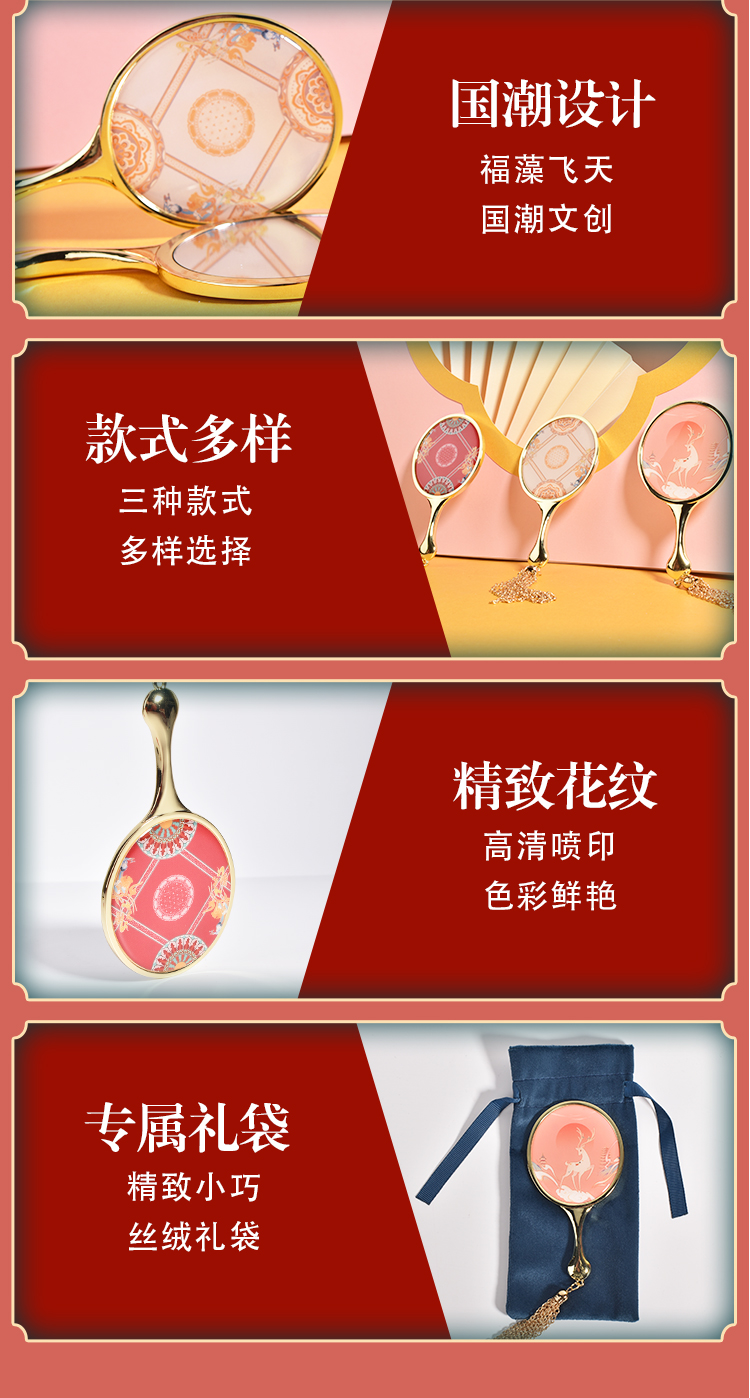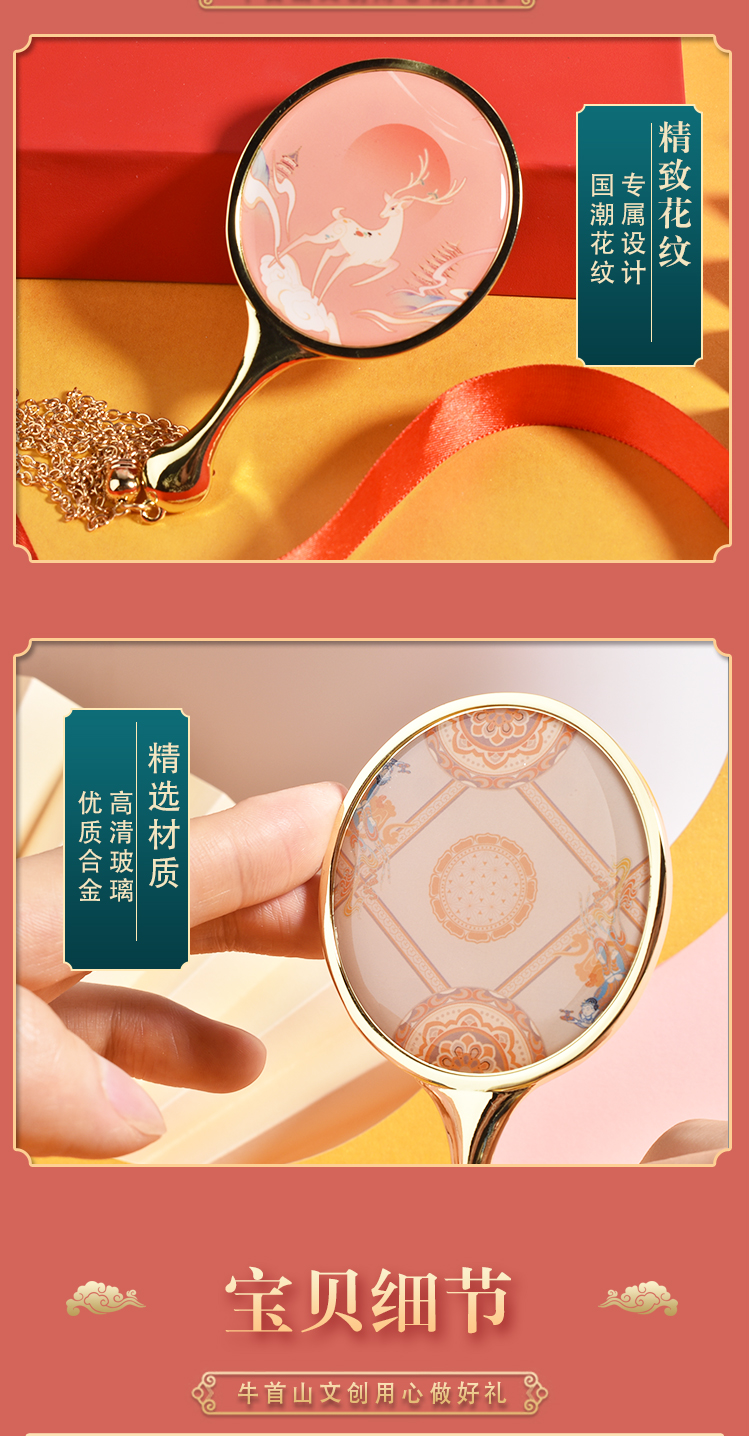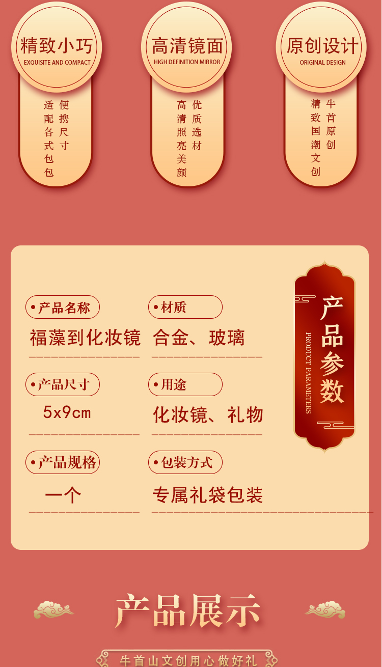 牛首山文创福藻到瑞兽化妆镜随身便携小巧高清镜子送女式对象包包收纳