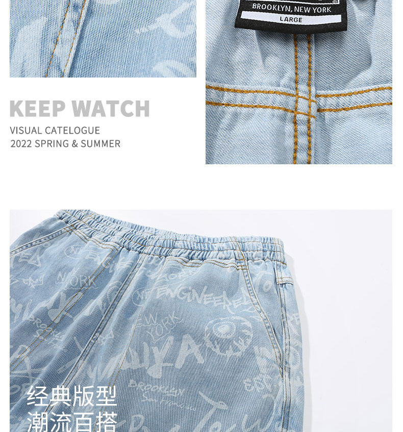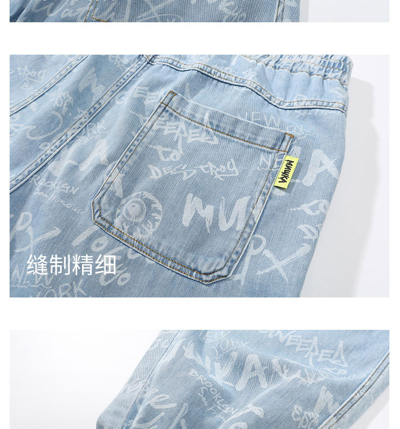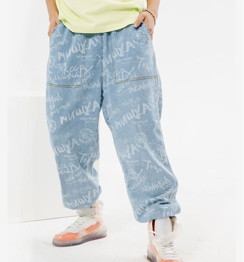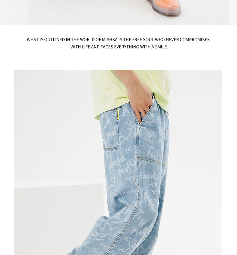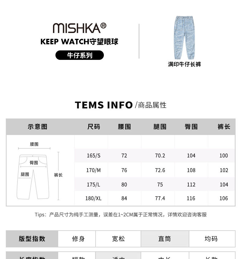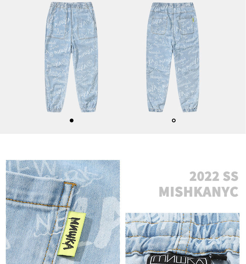 MISHKA大眼球潮牌2022春夏新品 满印印花休闲牛仔裤束脚裤长裤M21100907M