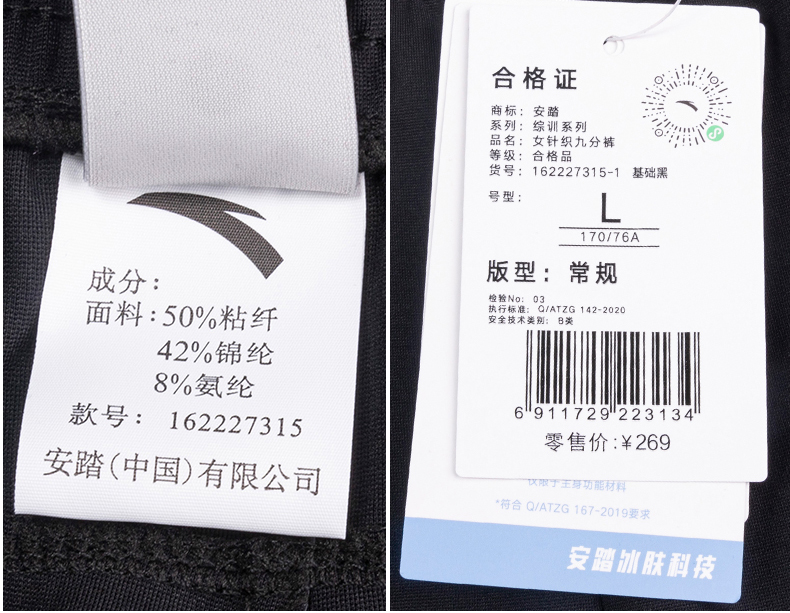安踏运动裤女裤2022夏季新款舒适冰丝薄长裤针织九分裤162227315-1