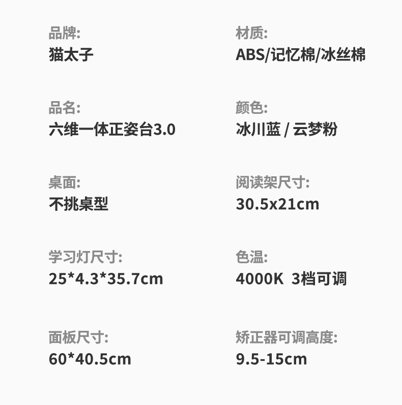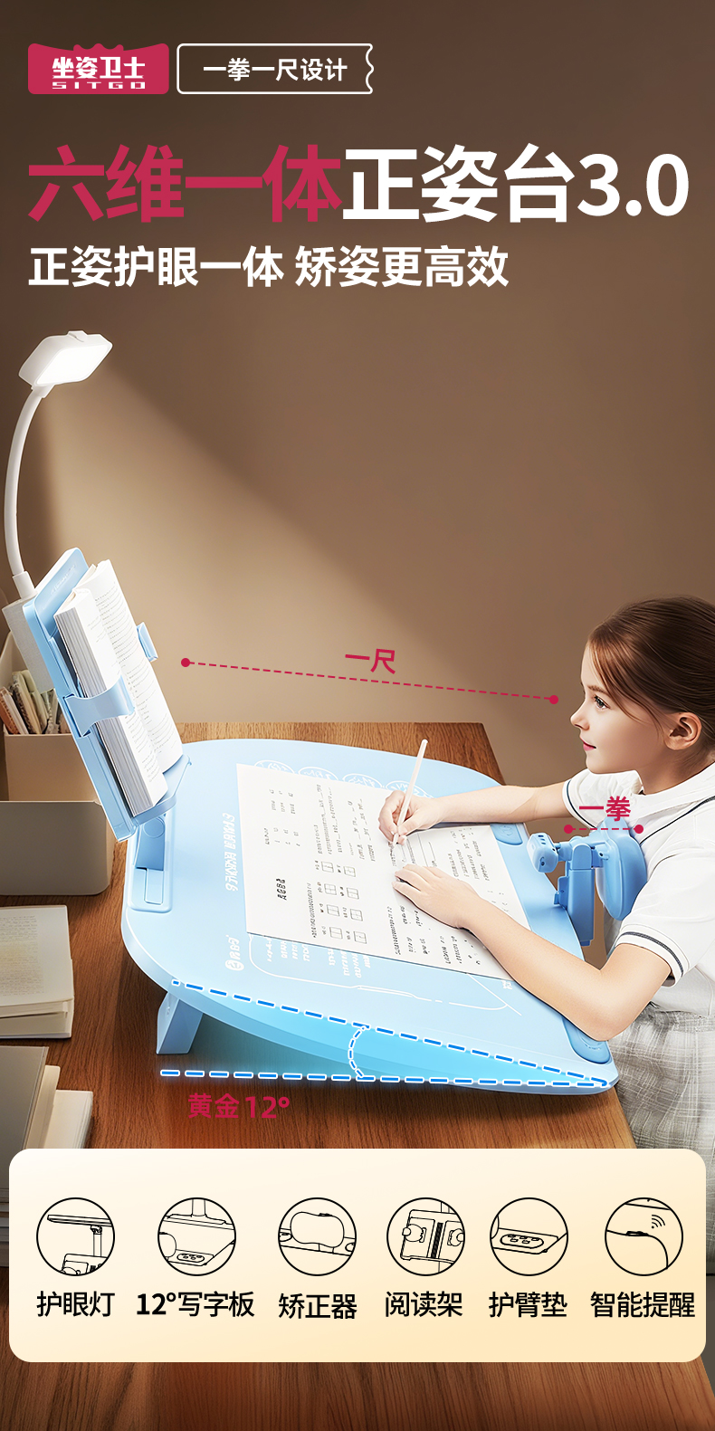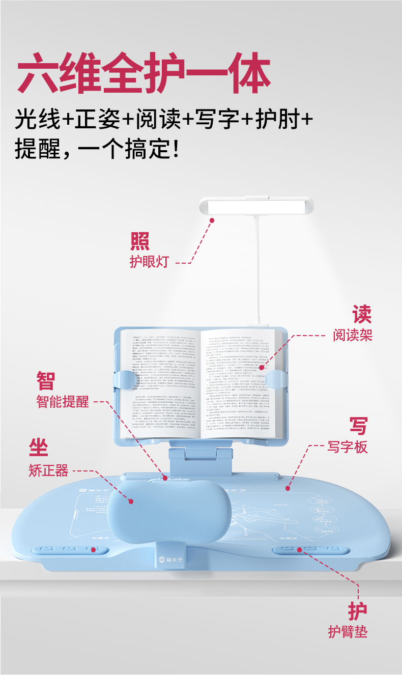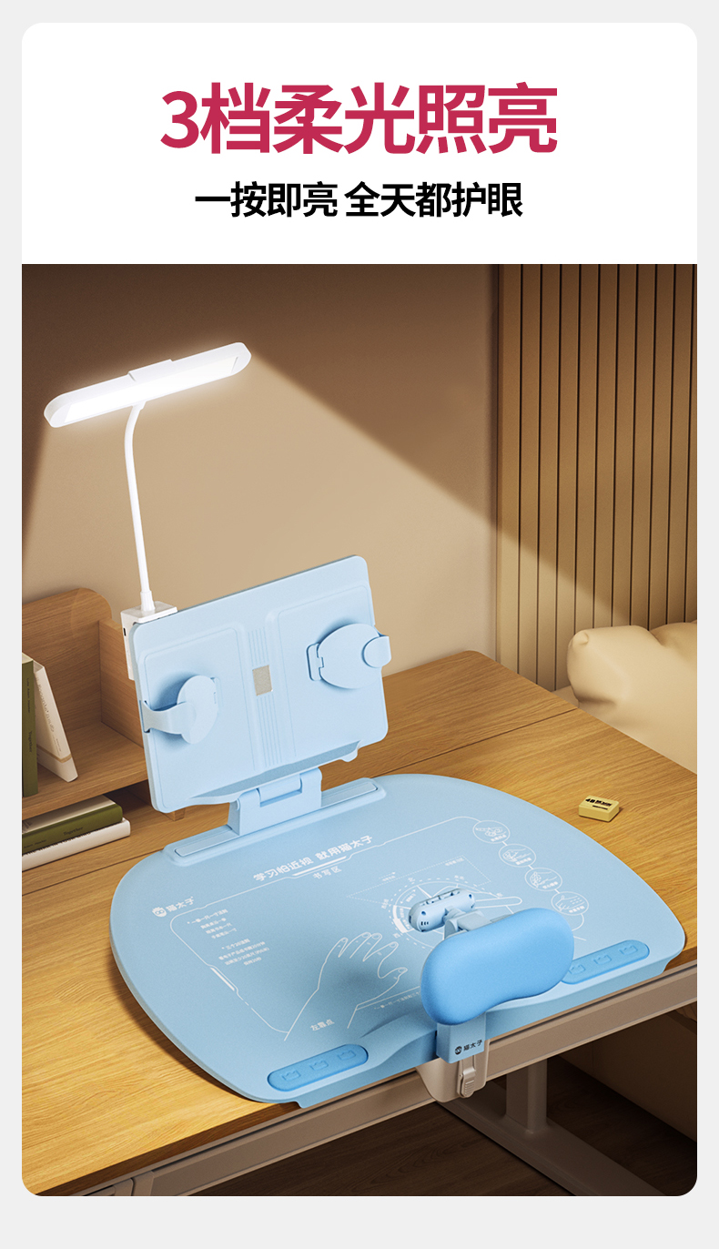 猫太子台灯款五六维12°坐姿矫正器写字姿势儿童小学生防近视支架写作业学习纠正书写防低头防驼背书桌面款神器