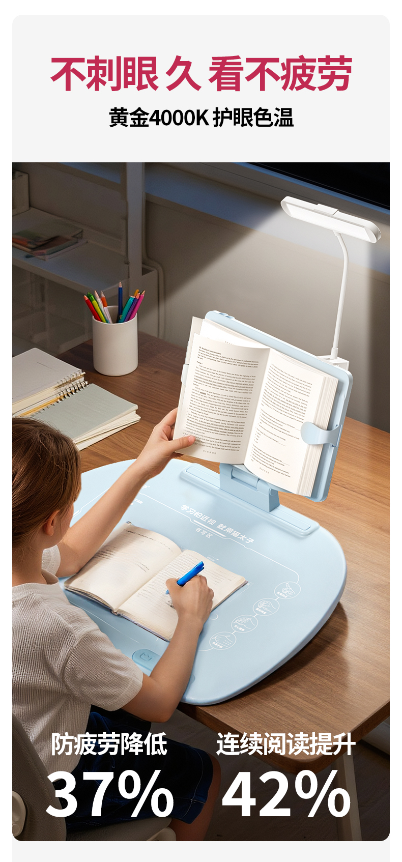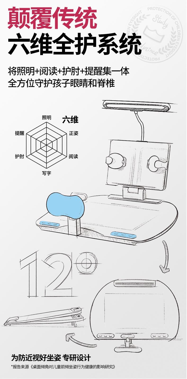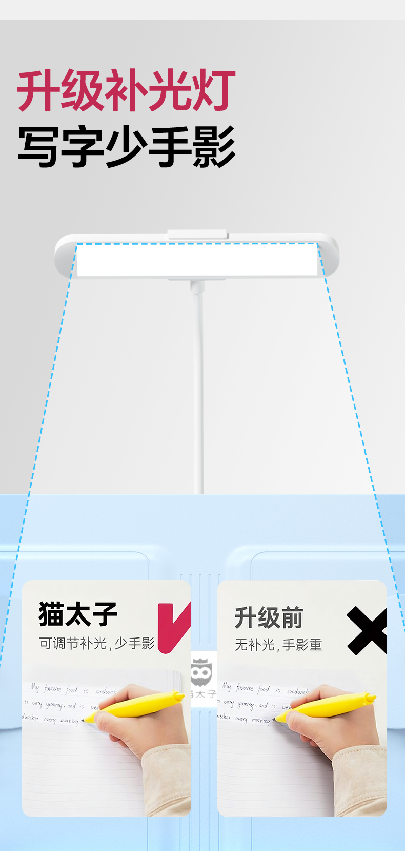 猫太子台灯款五六维12°坐姿矫正器写字姿势儿童小学生防近视支架写作业学习纠正书写防低头防驼背书桌面款神器