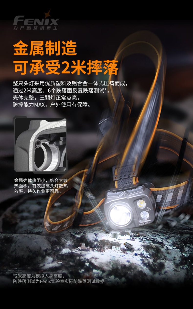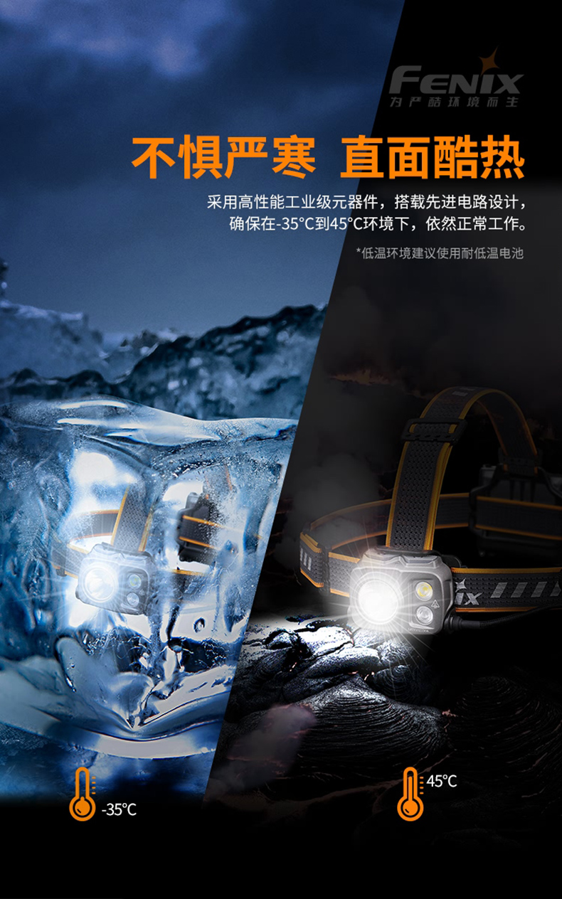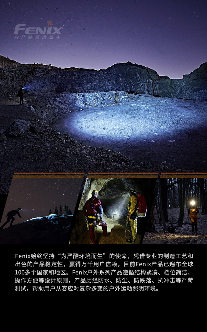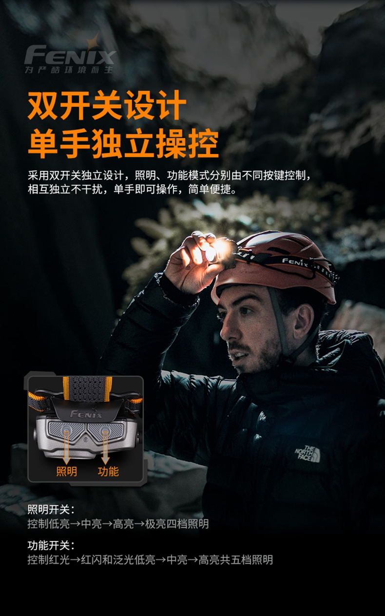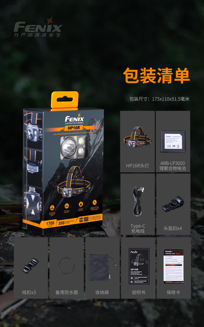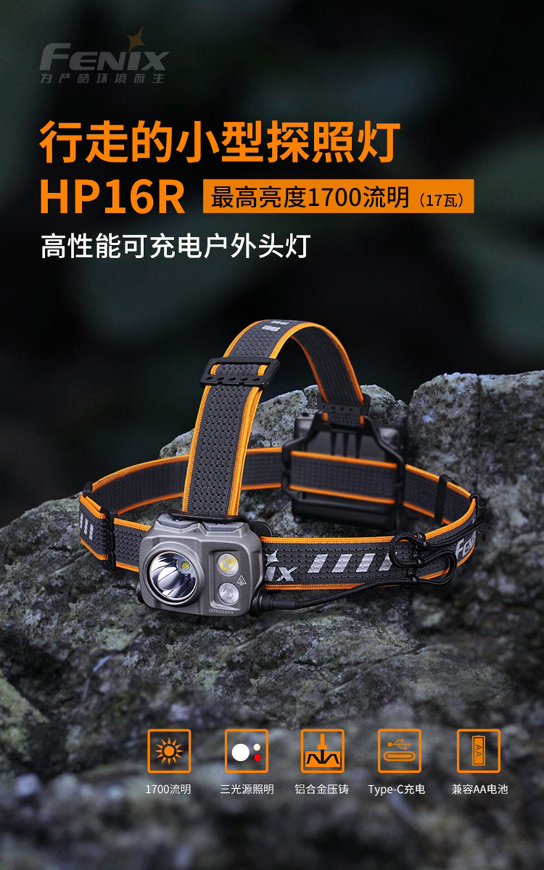 Fenix菲尼克斯HP16R户外探照超亮LED头灯戴式USB直充锂聚合物电池
