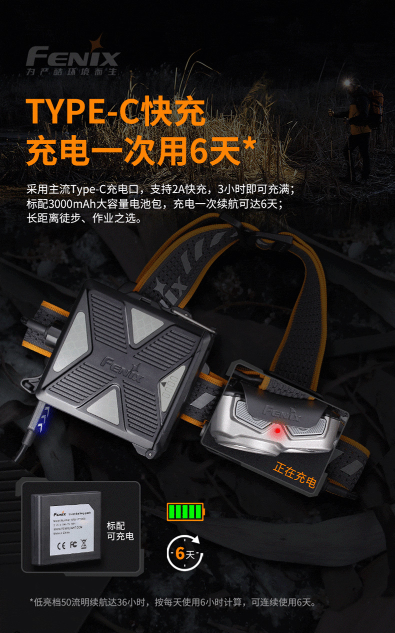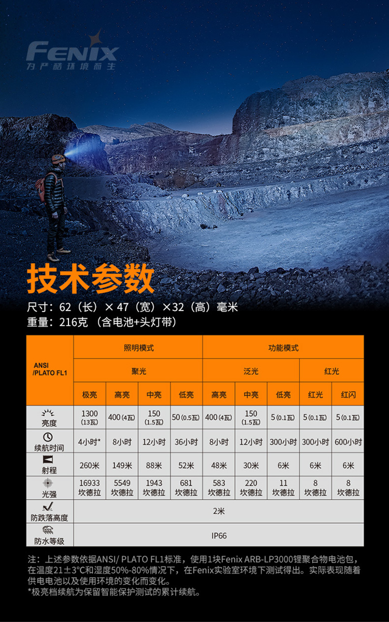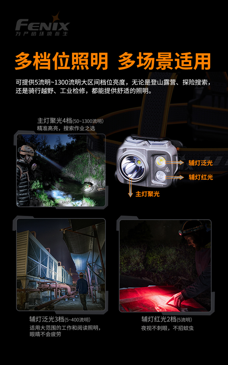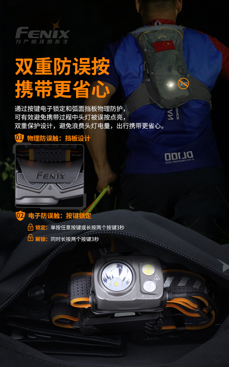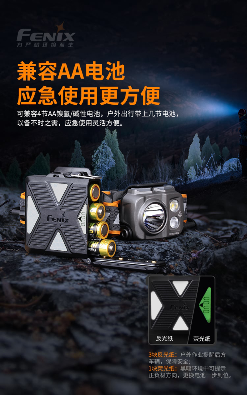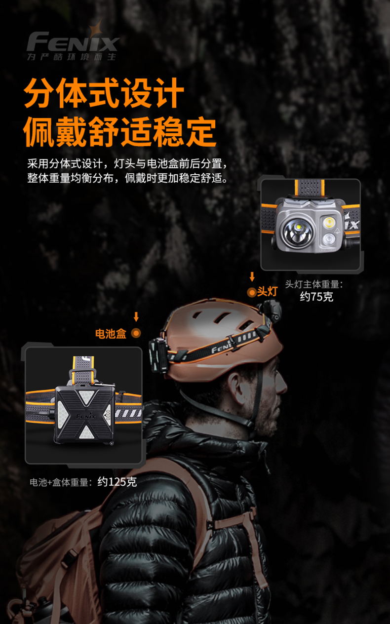 Fenix菲尼克斯HP16R户外探照超亮LED头灯戴式USB直充锂聚合物电池