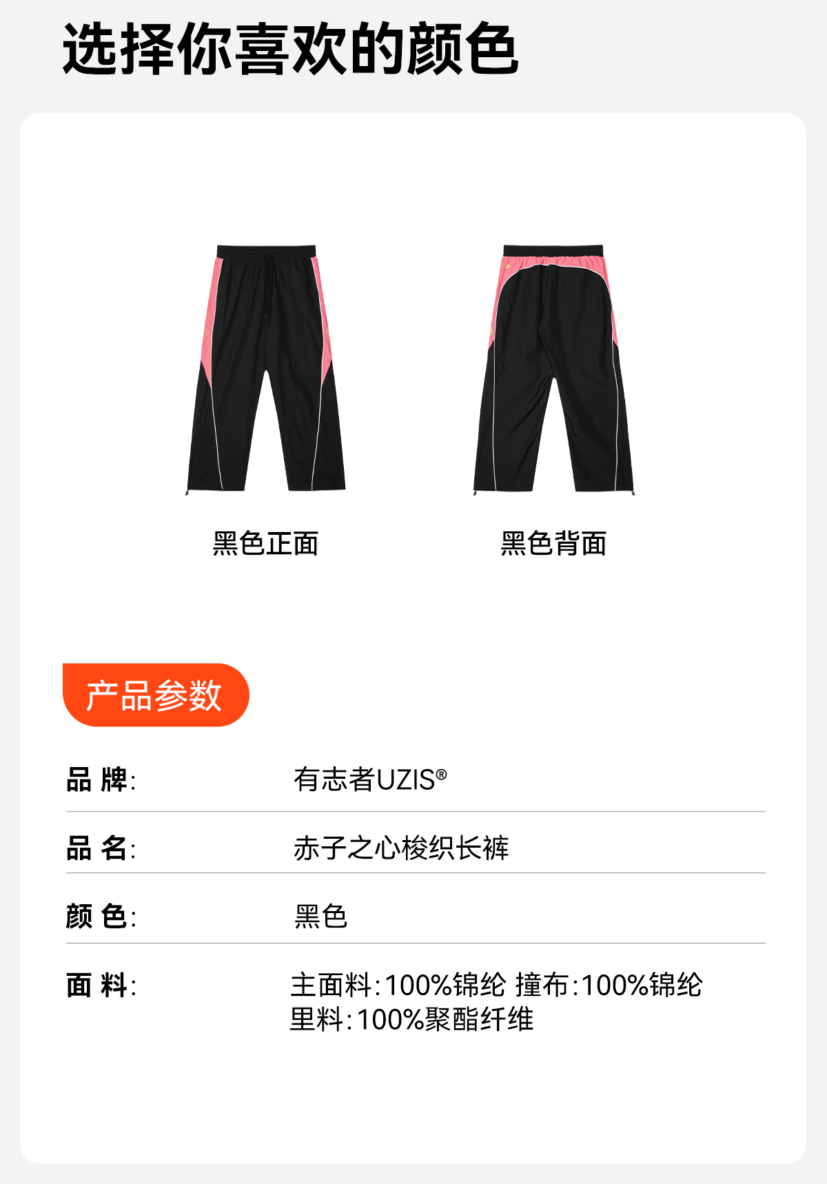 有志者UZIS 张宁同款赤子之心运动长裤男美式宽松抽绳梭织直筒裤