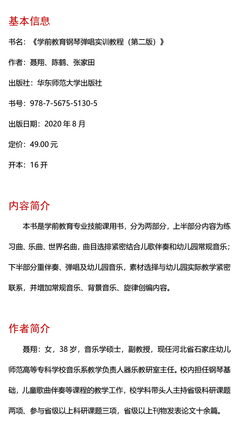 学前教育钢琴弹唱实训教程 第二版 新标准学前教育专业系列教材 正版 华东师范大学出版社