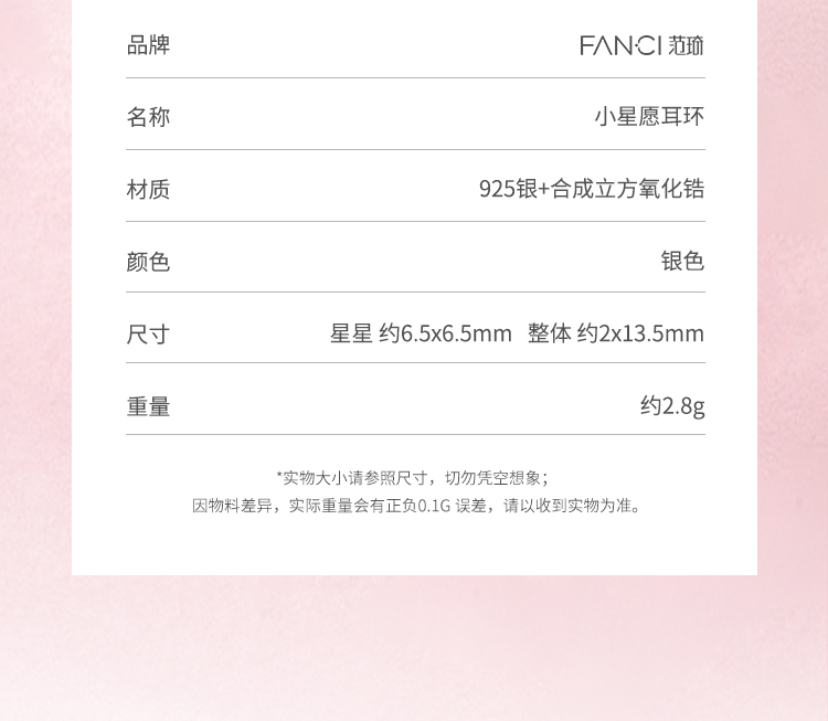 Fanci范琦【小星愿耳环】小星愿耳环925银轻奢高级感耳饰小众设计纪念日周年礼物