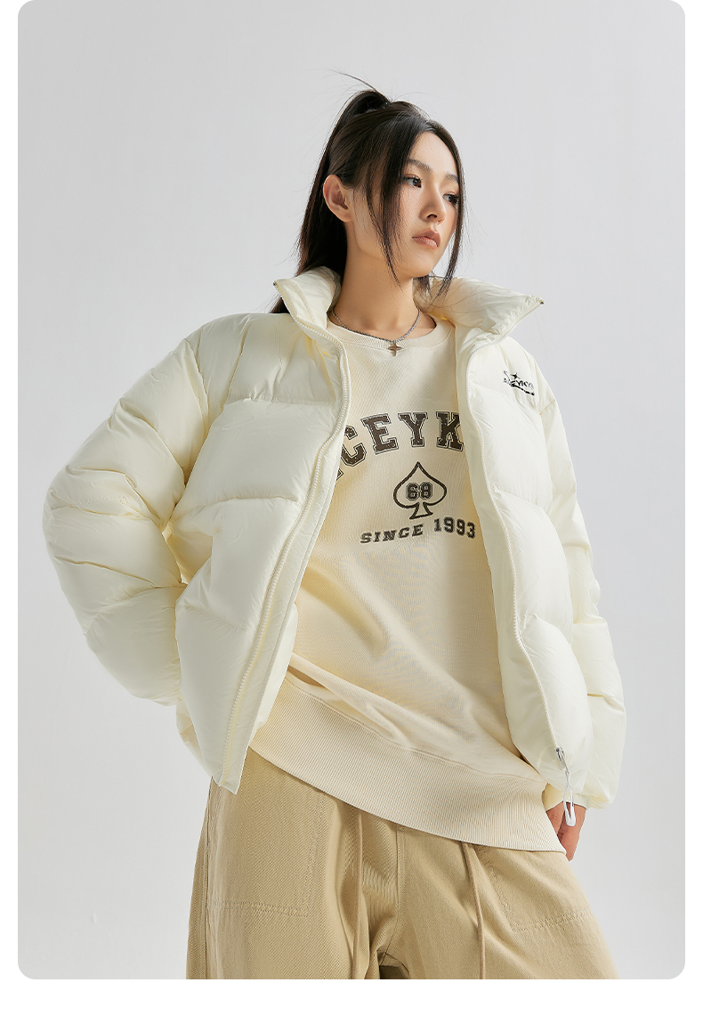 YKYB羽绒服潮牌冬季新款白鸭绒上衣纯色百搭简约加厚保暖宽松外套