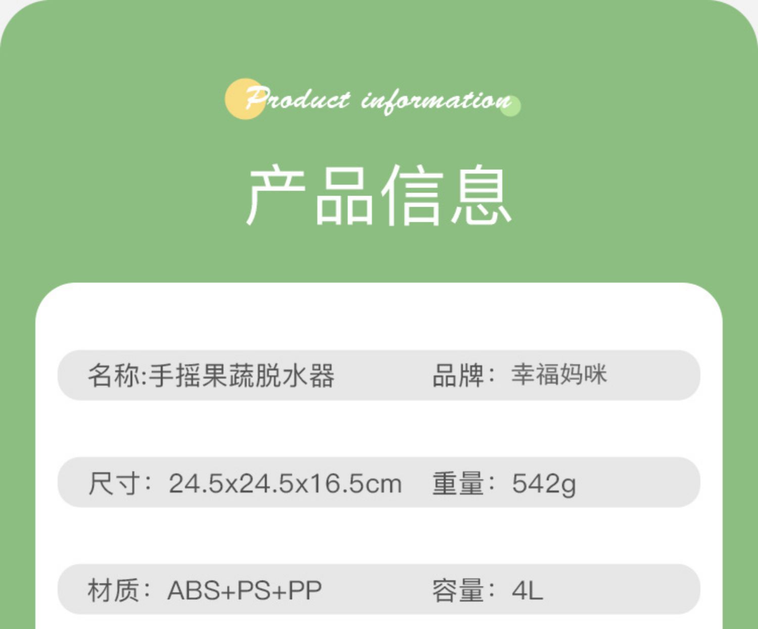 幸福妈咪多功能脱水器蔬菜脱水篮(深浅绿)