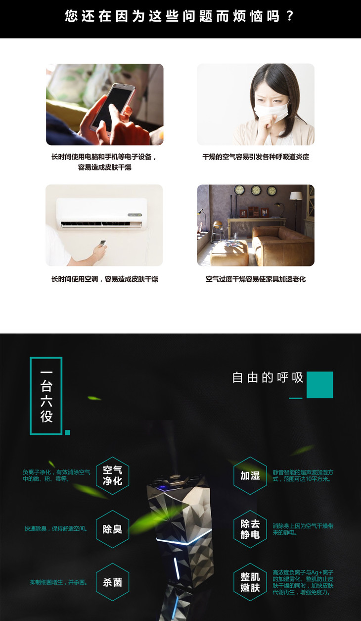 【亏本清仓】日本G&K负离子空气净化加湿二合一 美容加湿器家用智能净化(不支持无理由退换)[福利品]
