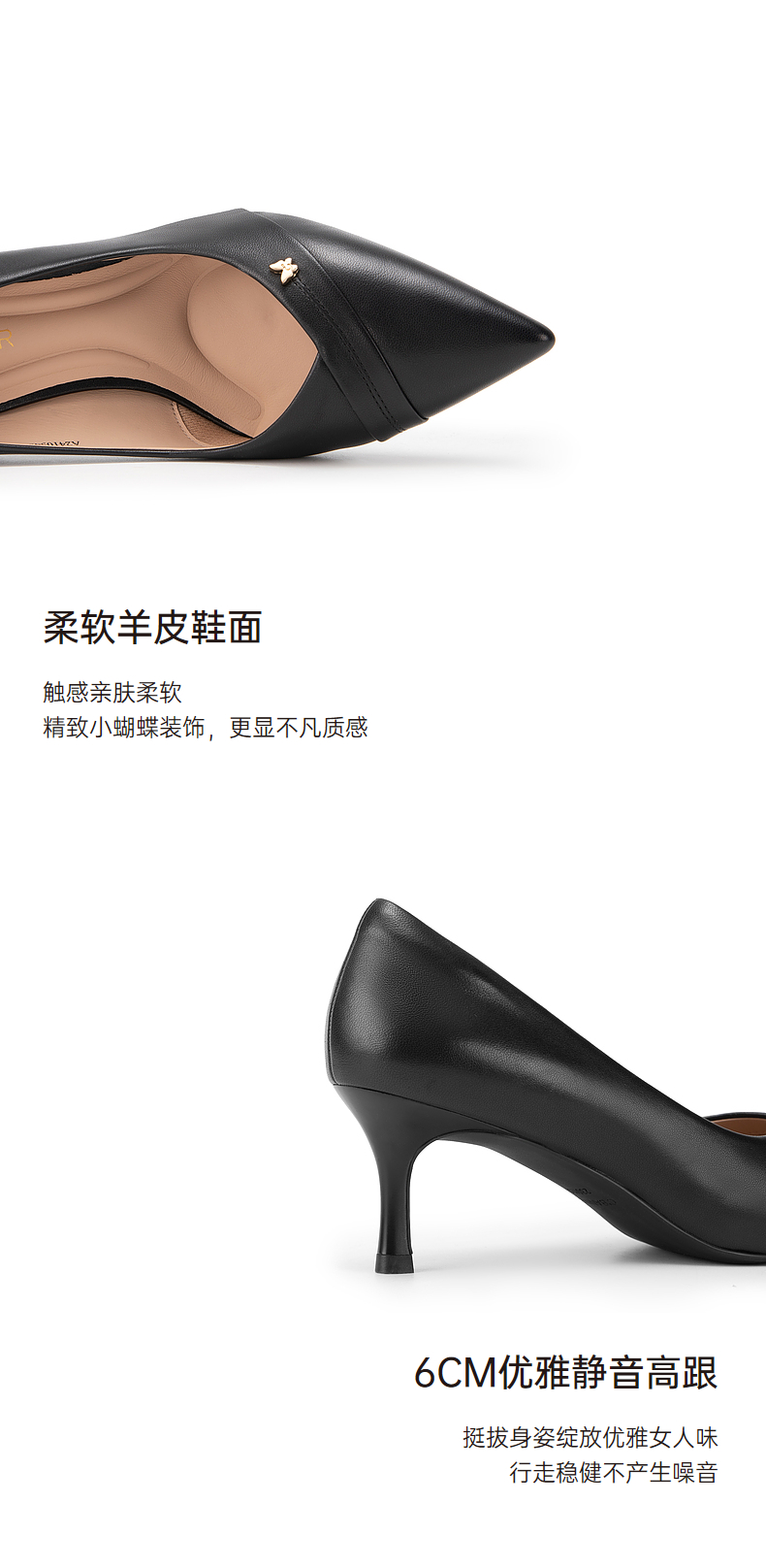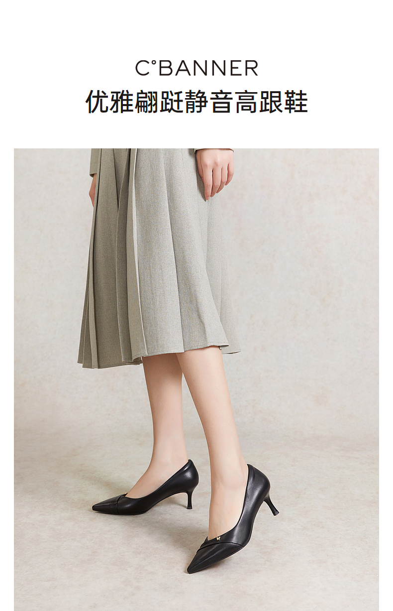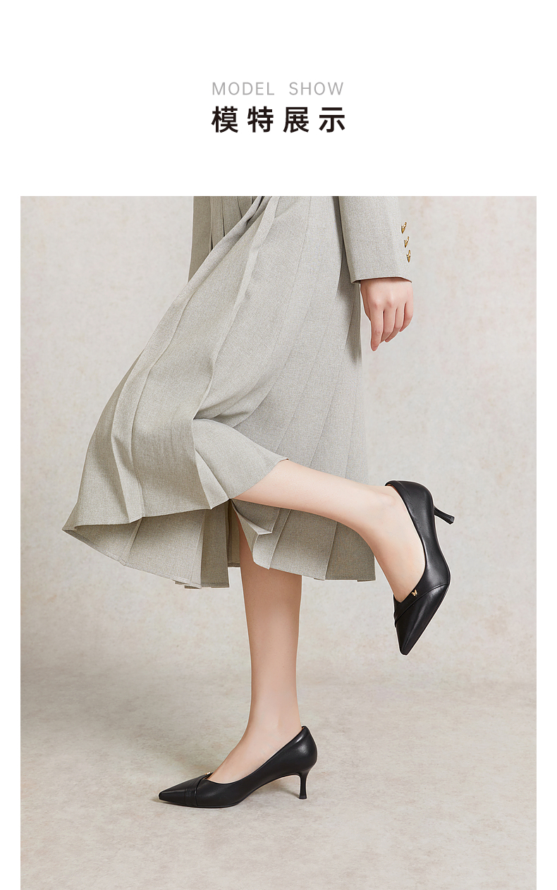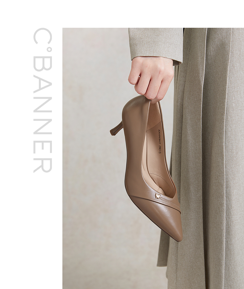 【静音系列】千百度裸色细高跟鞋春季法式单鞋女通勤羊皮A24105438