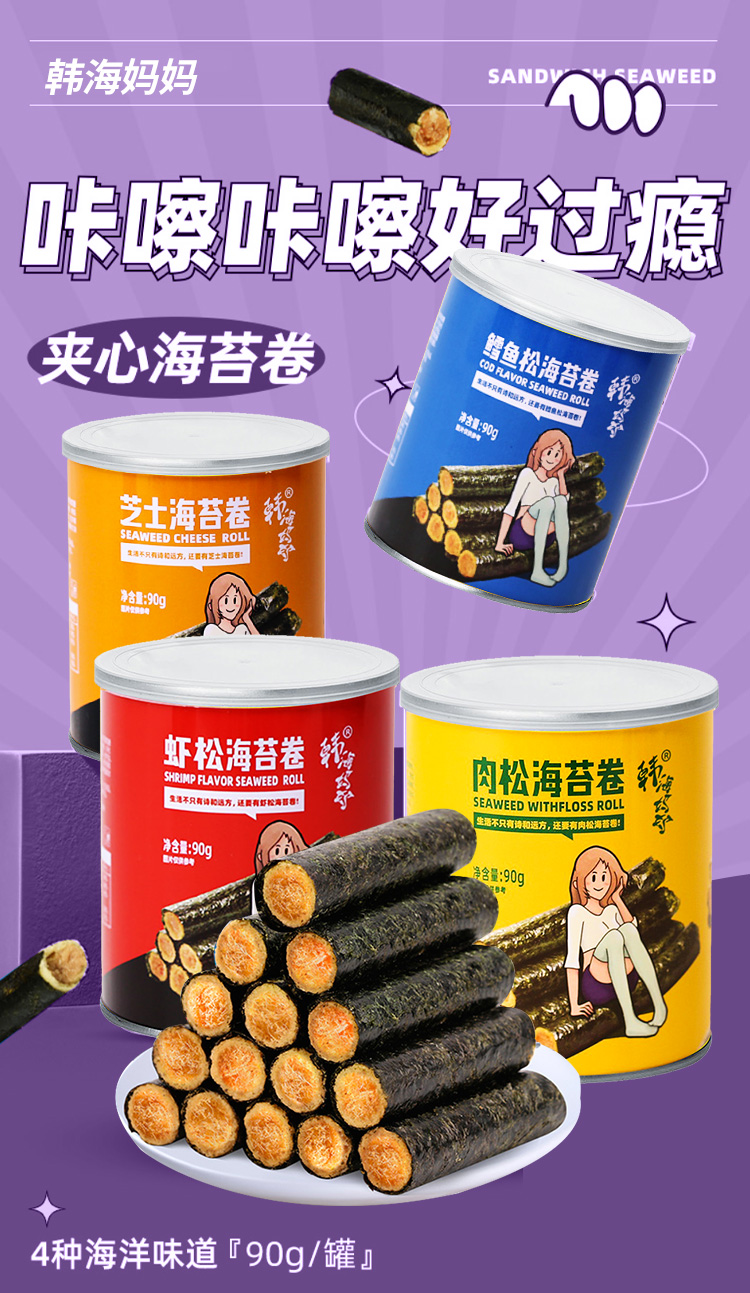 韩海妈妈牌芝士海苔卷90g/罐