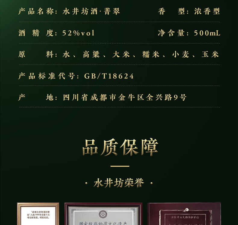 水井坊 菁萃 52度浓香型白酒 500ml