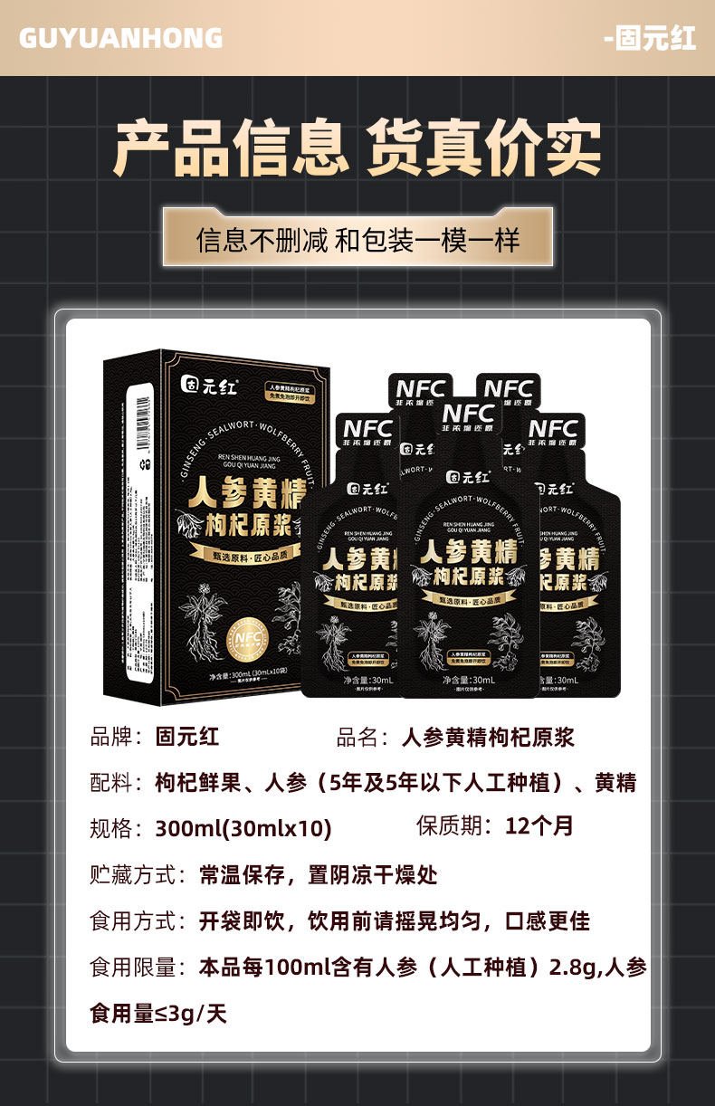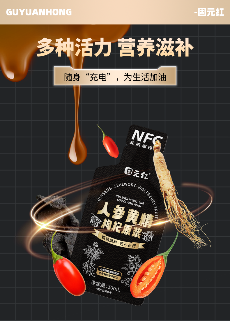 固元红丨人参黄精枸杞 30ml*10袋/盒
