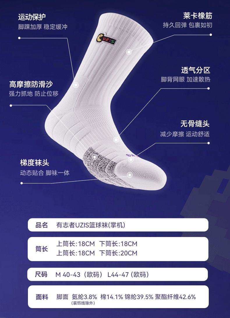 有志者UZIS美式篮球袜男士防滑透气美式长筒刺绣袜子专业训练掌机
