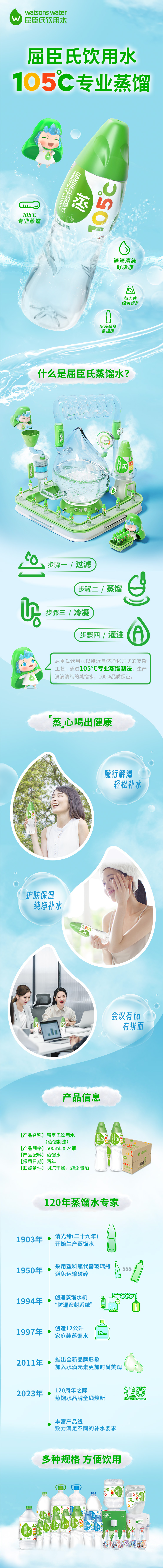 屈臣氏饮用水(蒸馏制法)百年水品牌 旅行聚会 会议用水 500ml*24瓶 整箱装(新老包装随机发)
