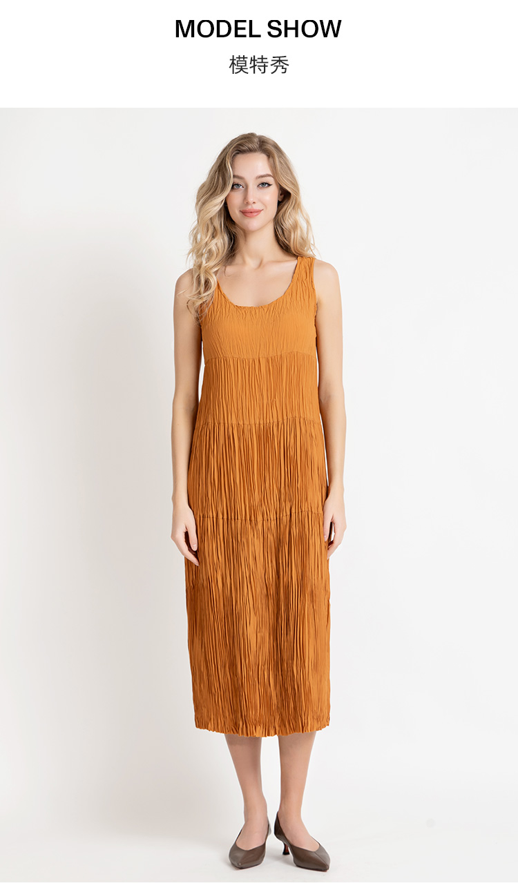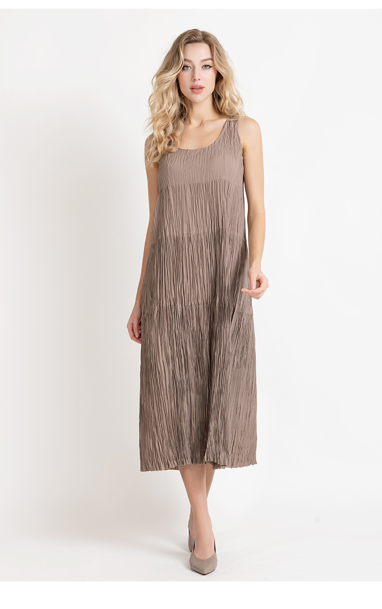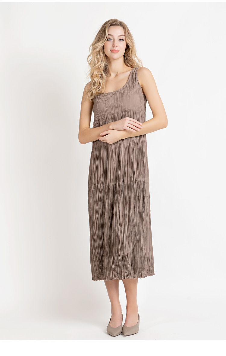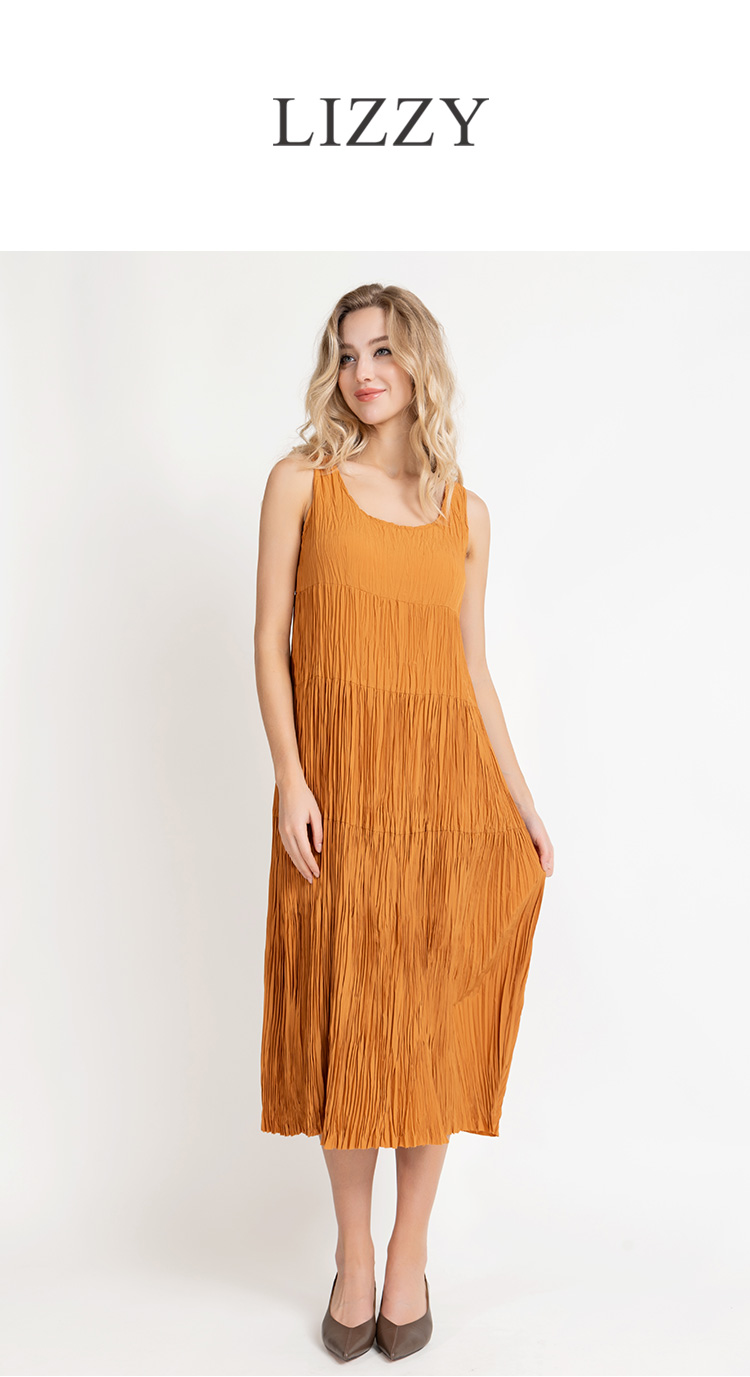 LIZZY 优雅高级感褶皱通勤休闲舒适背心连衣裙8032