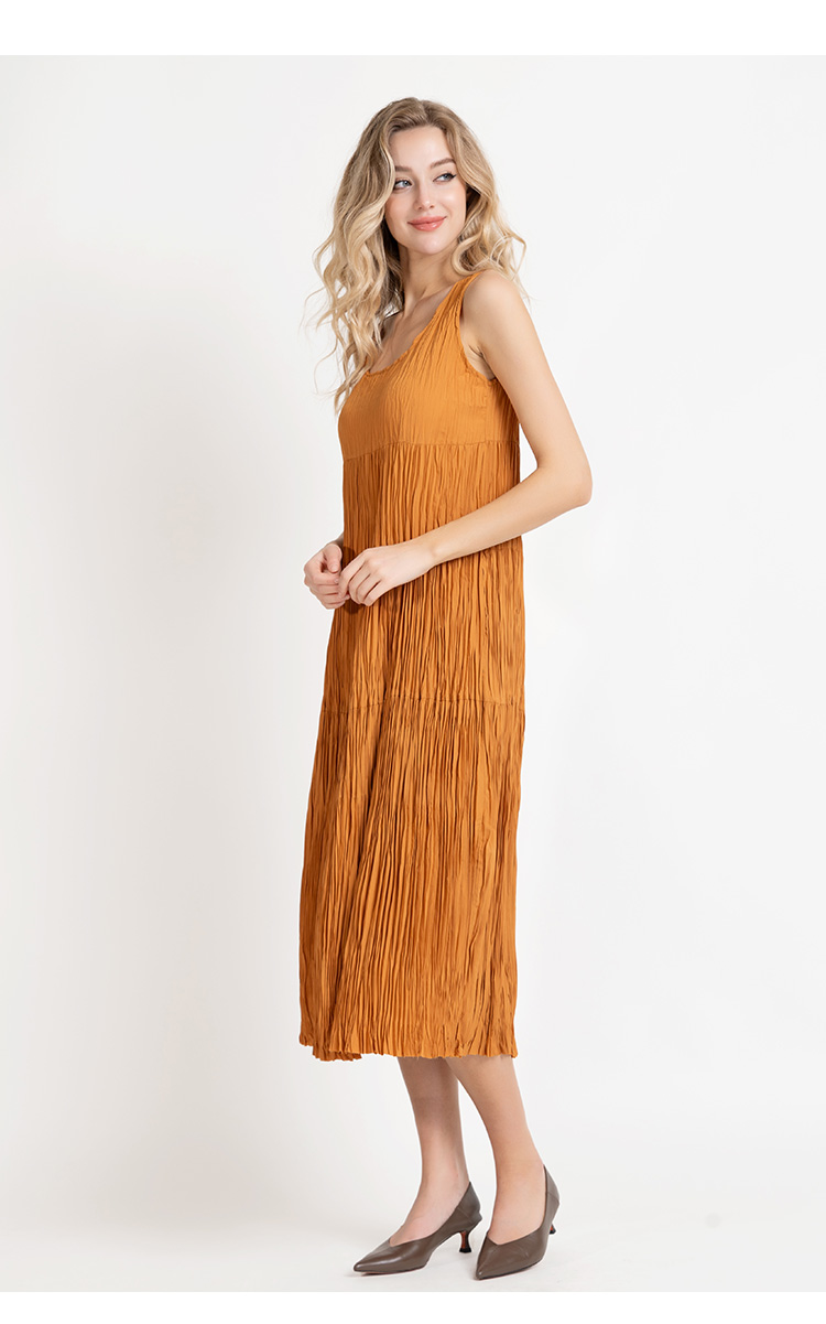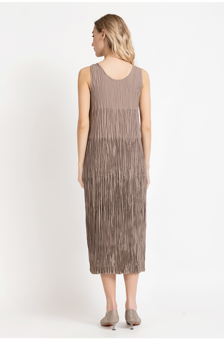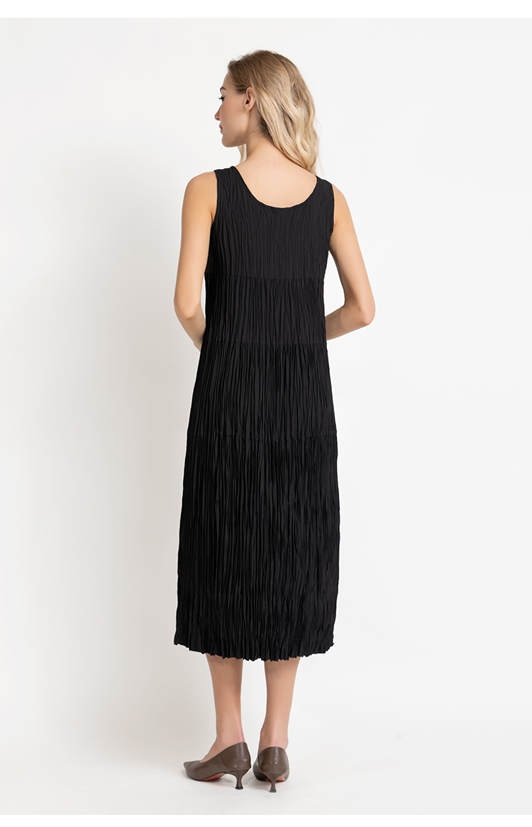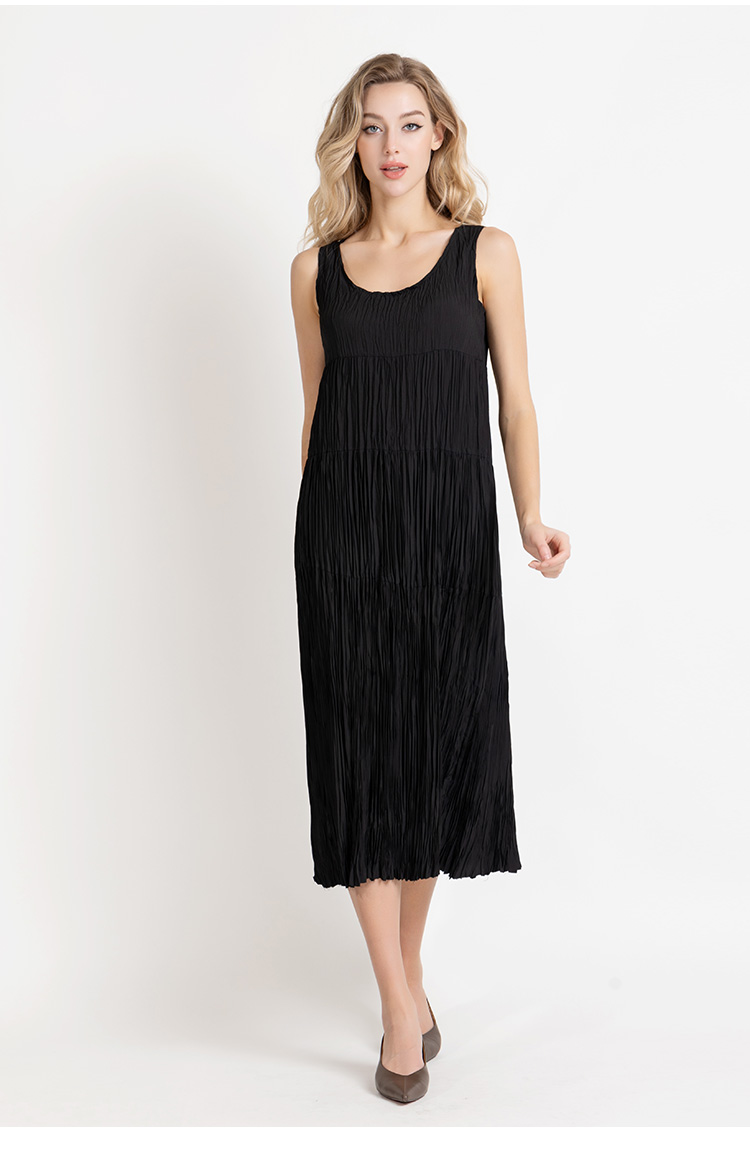 LIZZY 优雅高级感褶皱通勤休闲舒适背心连衣裙8032