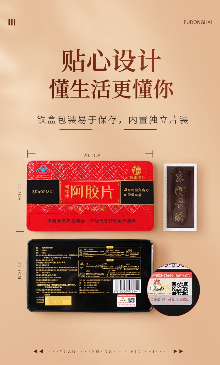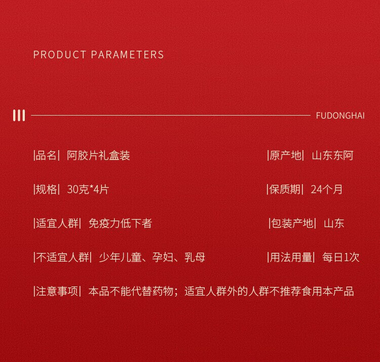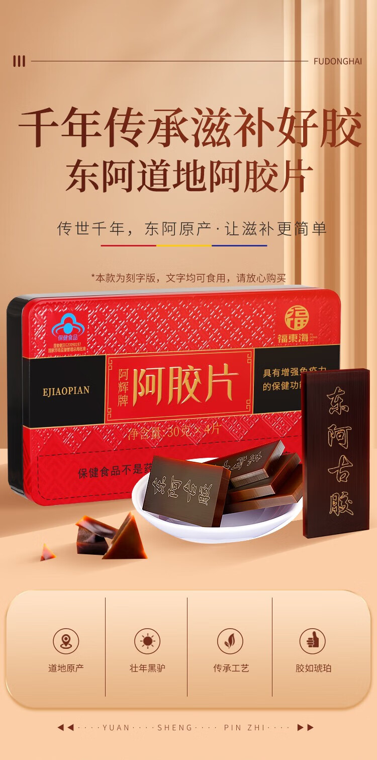 福东海 阿胶片120克(30克x4片)/盒(配礼袋)
