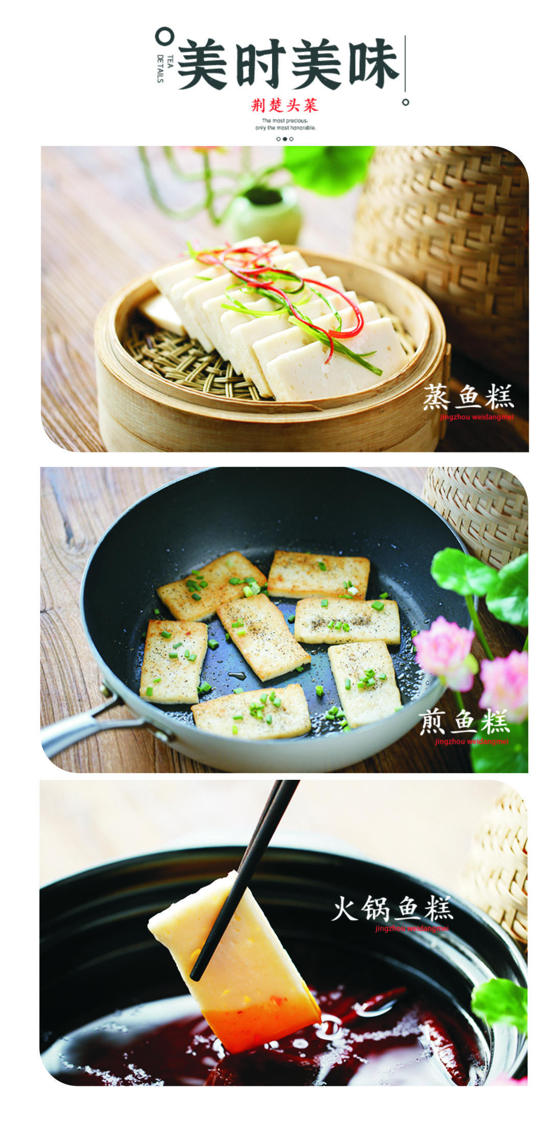 【非遗技艺·Gi地理标志荆州鱼糕&淡水鱼丸】纯手工制作 配料干净 肉质鲜嫩 爽滑Q弹 800g*3盒装