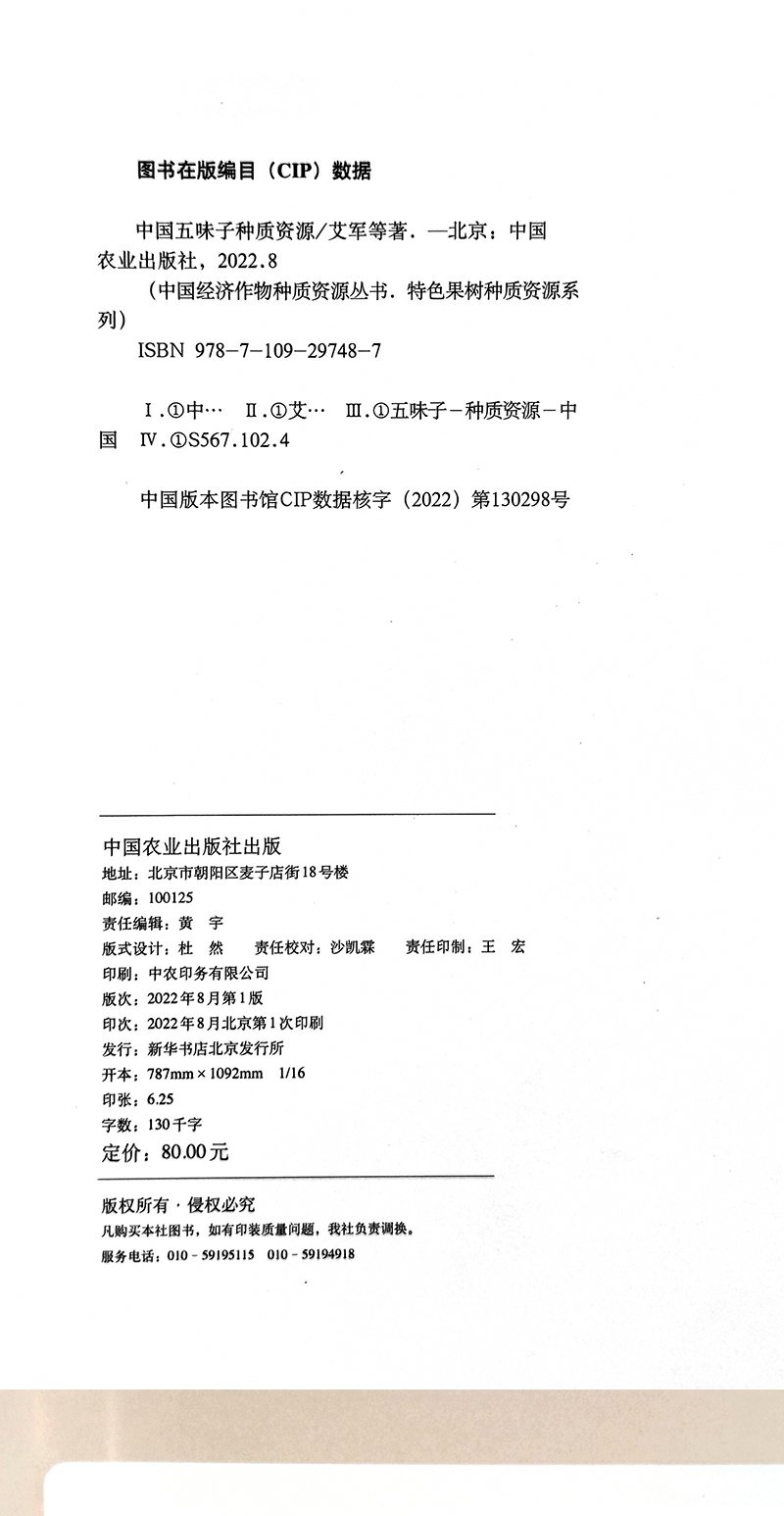 中国五味子种质资源 艾军,王英平等 中国经济作物种质资源丛书•特色果树种质资源系列 中药 药材 29748