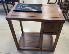龙福胡桃木单抽茶水柜 胡桃木小圆桌胡桃木小茶桌