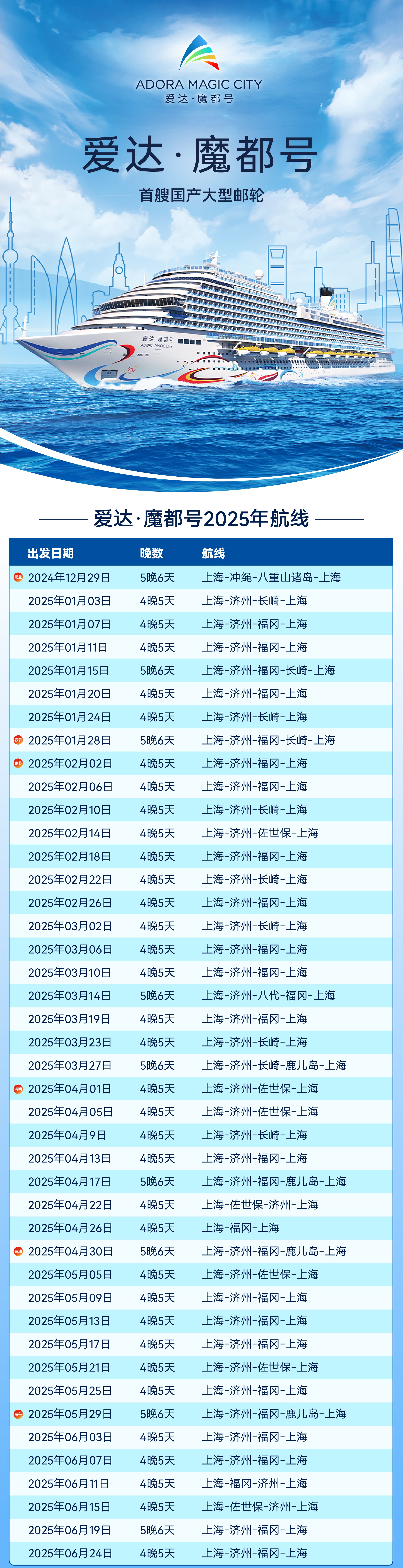 【爱达邮轮·魔都号】国产首艘大型游轮·日韩免签【上海出发】 (注意:票价因航次、路线实时变化,务必咨询客服查实时票价,请勿静默下单)